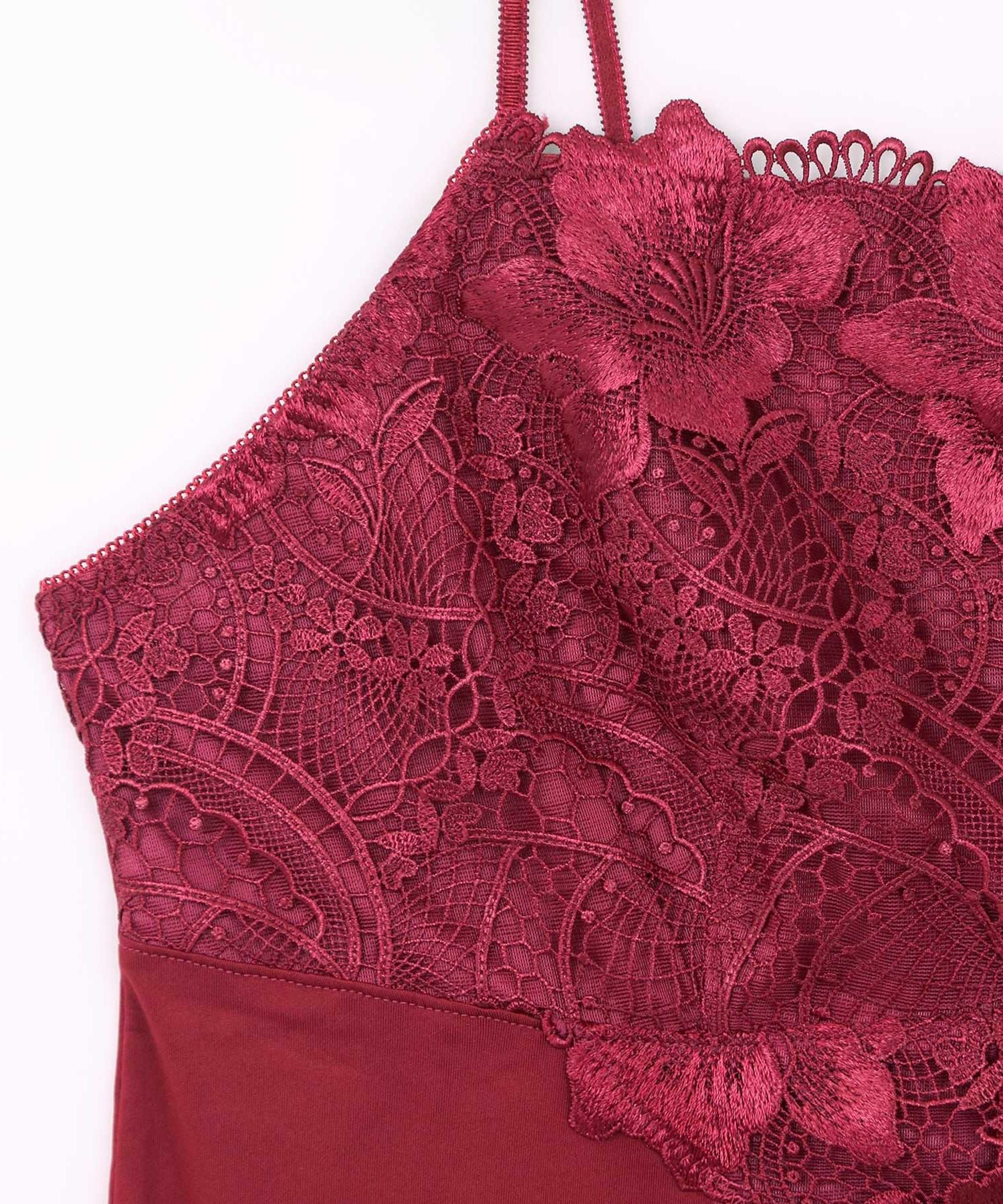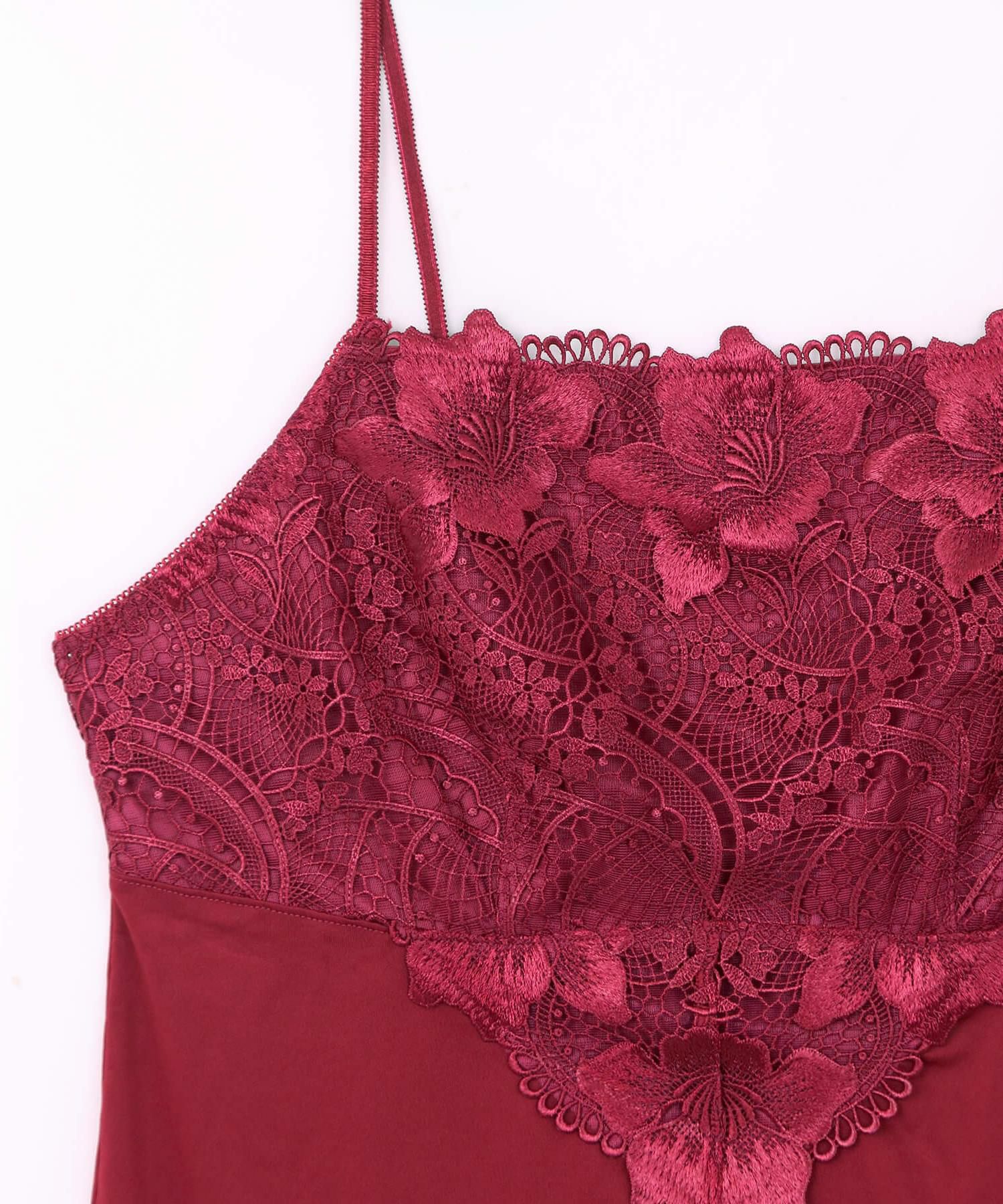 高級レースをたっぷり使用した胸元は谷間が見えないバンドゥータイプのデザインはシャツやジャケットの襟元から覗かせても◎。