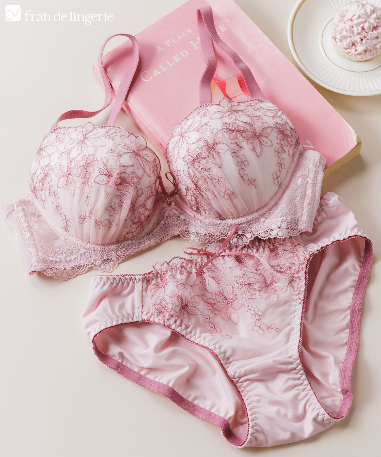 ラメ糸がきらめくフラワー刺繍レースが印象的なブラ&ショーツSET