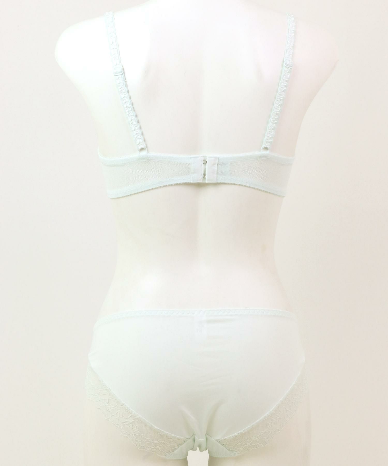 盛りすぎず、ナチュラルで自分らしいバストラインをメイクするブラは軽さも魅力。セットショーツは後ろ身頃の伸縮性が抜群でヒップにフィットするノーマルショーツタイプ。