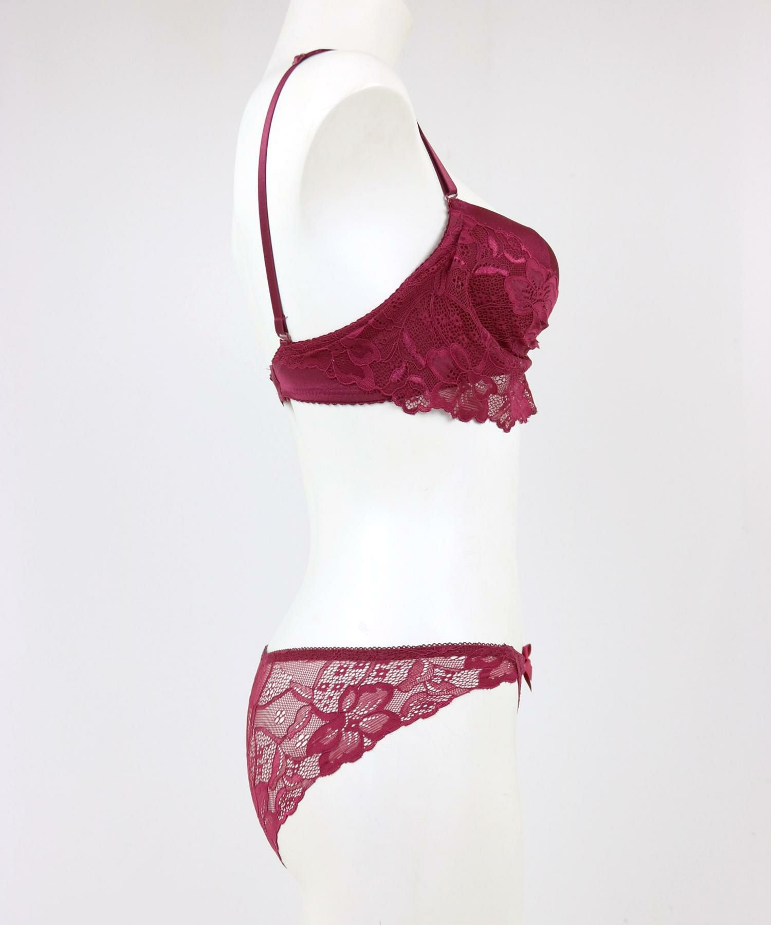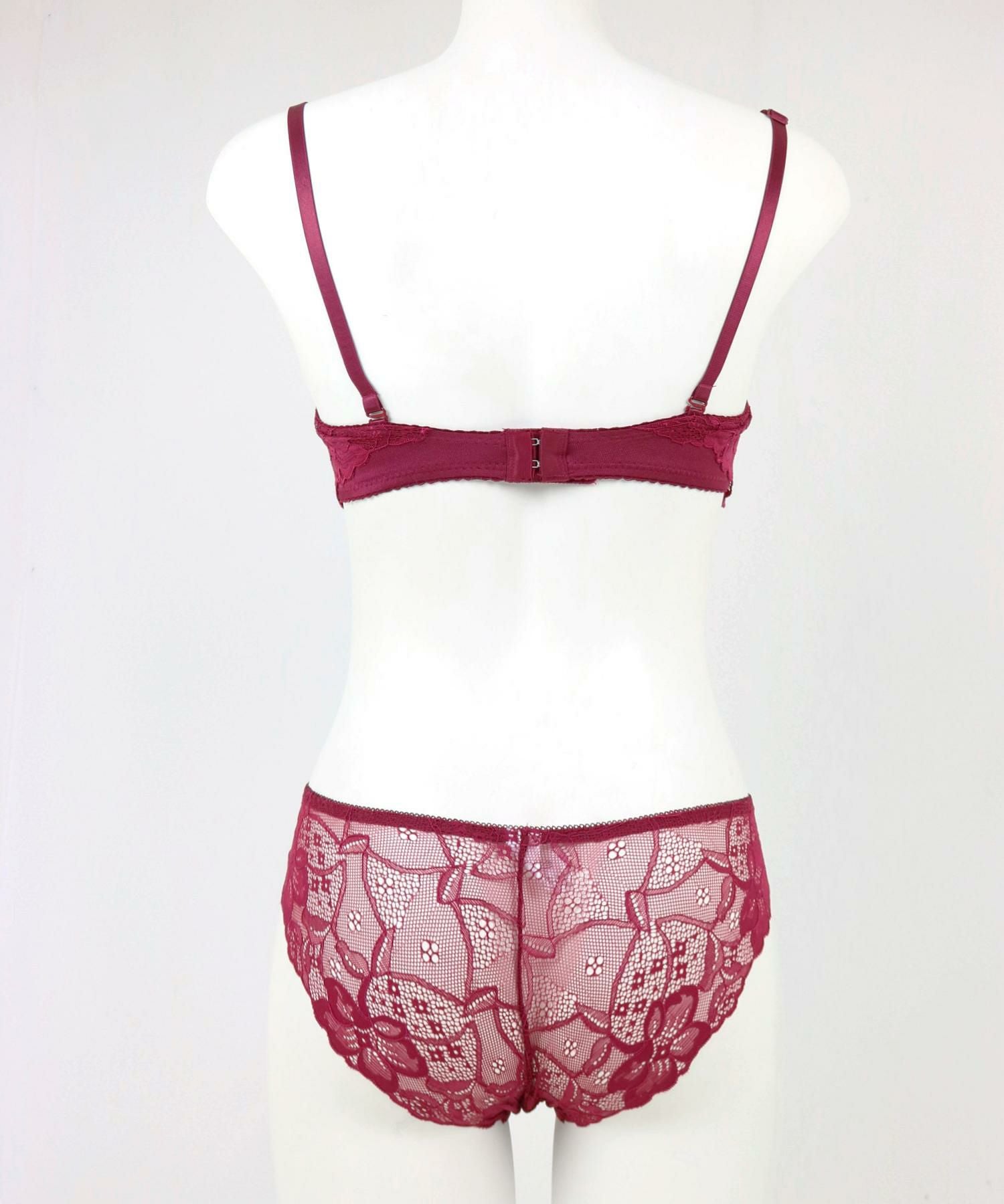 肌が透けるレース使いがエレガント。ショーツも人気のバックレースショーツでトレンド感も◎。