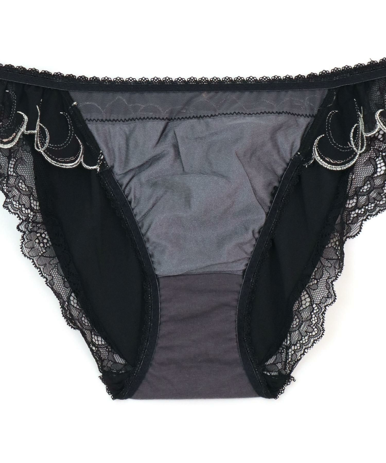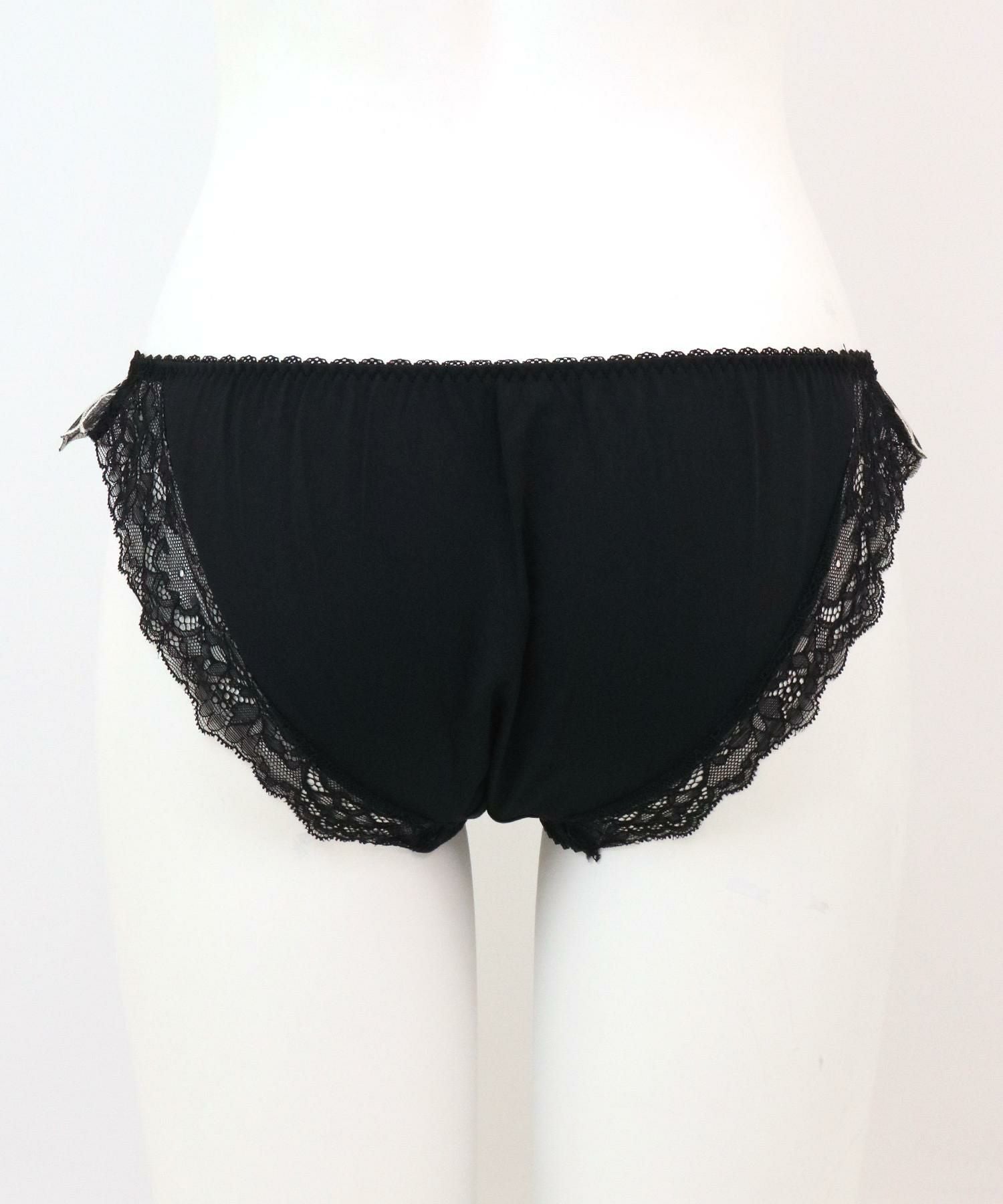 サイドのレースが華奢なノーマルショーツ。後ろ身頃は伸縮性の高い2WAY素材を使用し、心地よくヒップにフィットします。