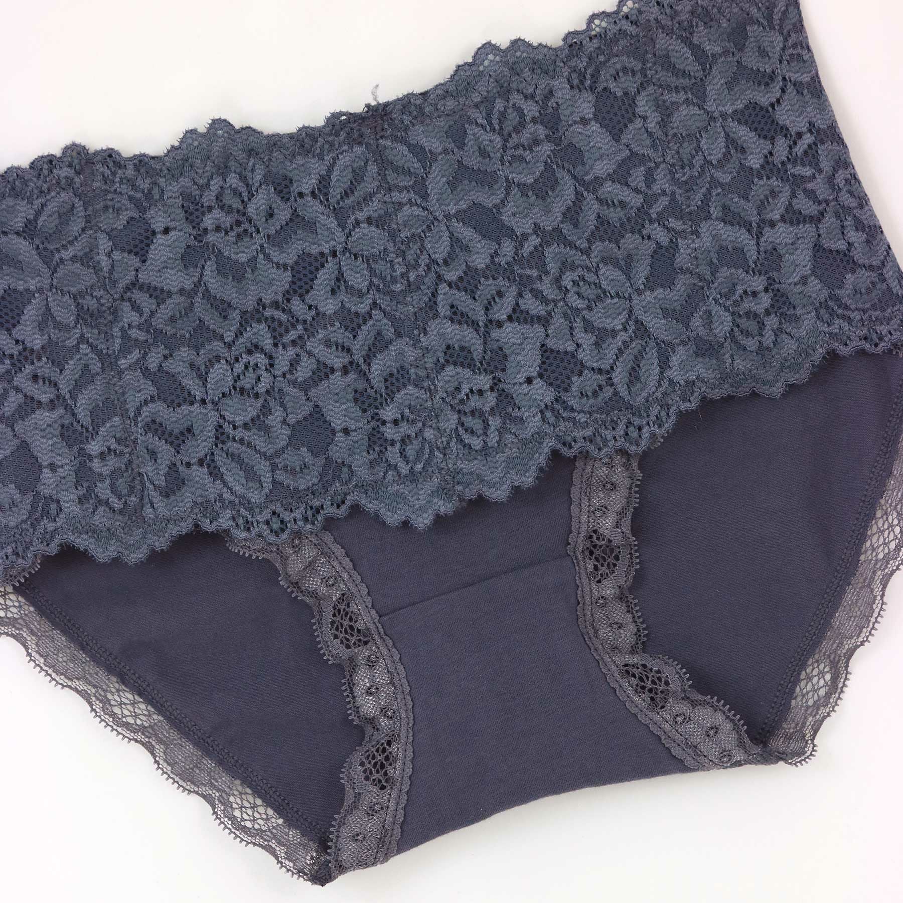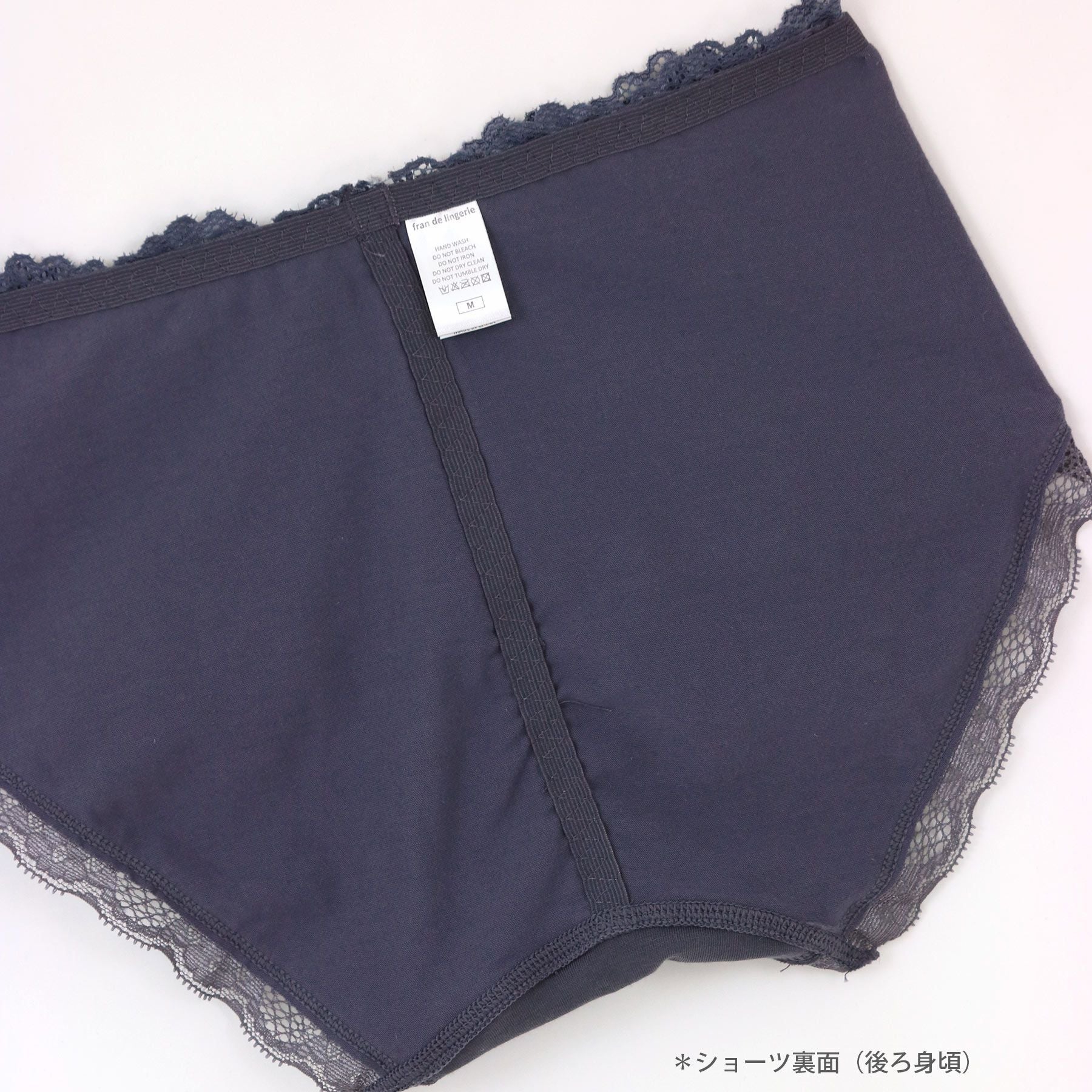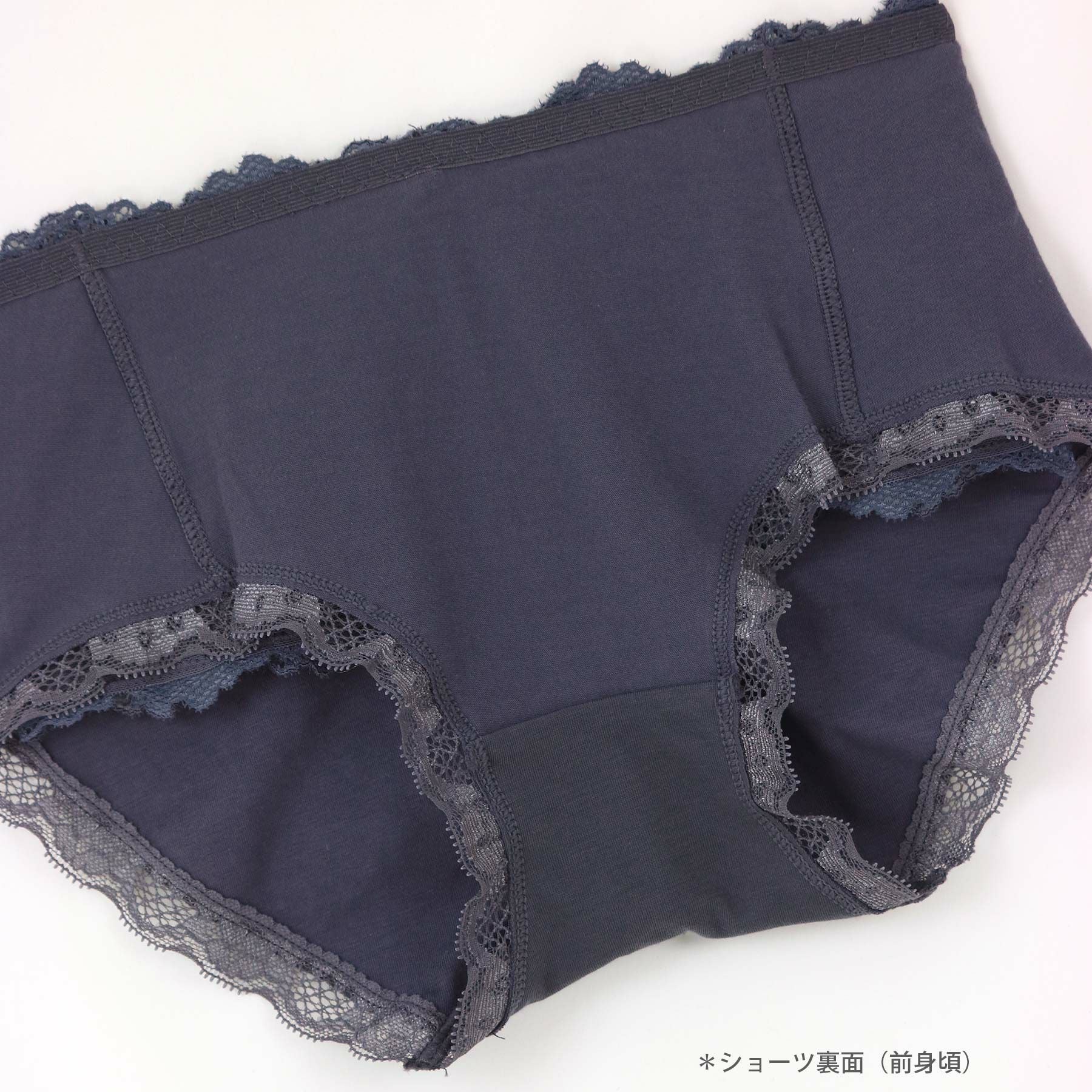 ヒップ中心にシャーリング&綿込み細幅レースが嬉しい。
