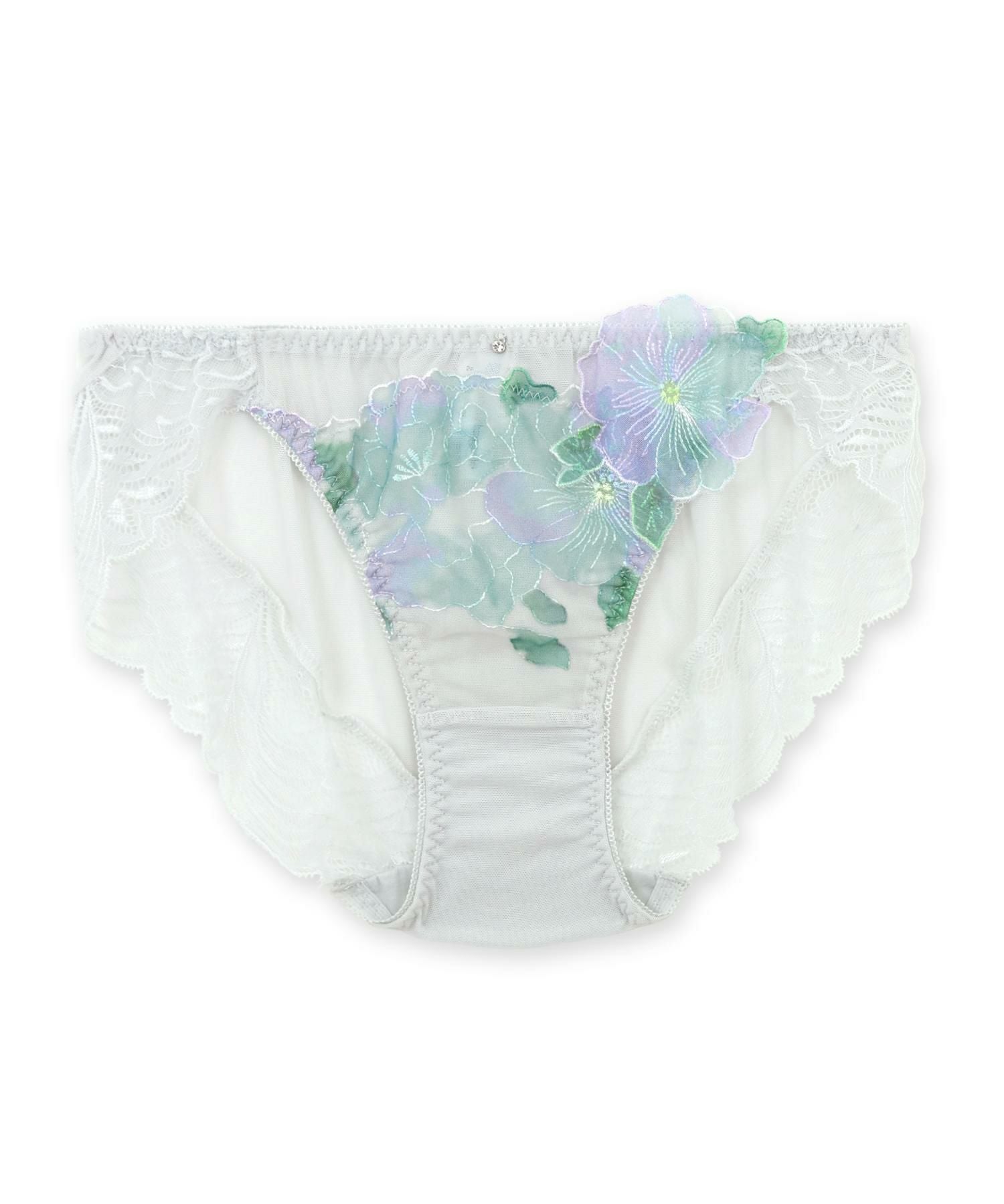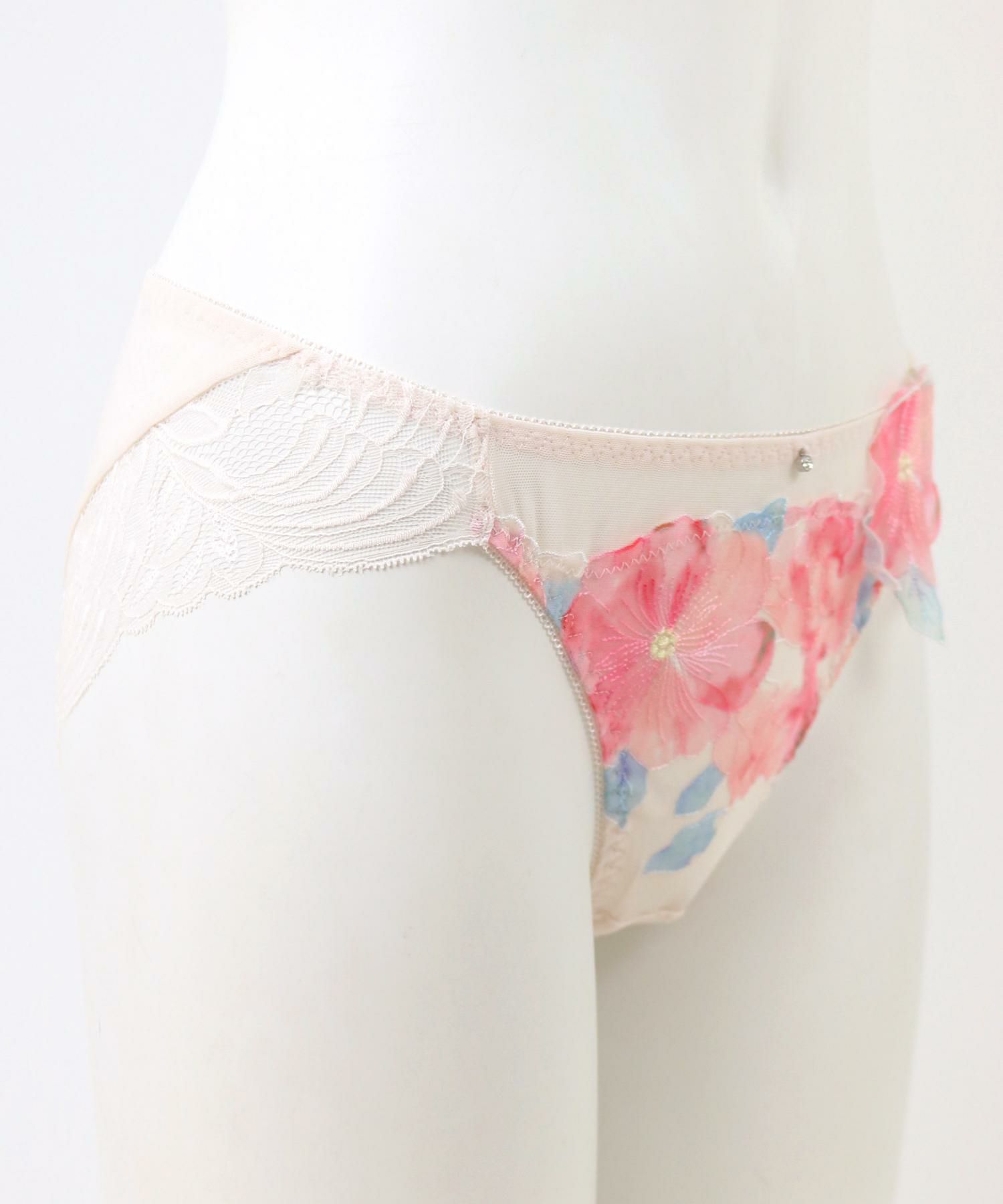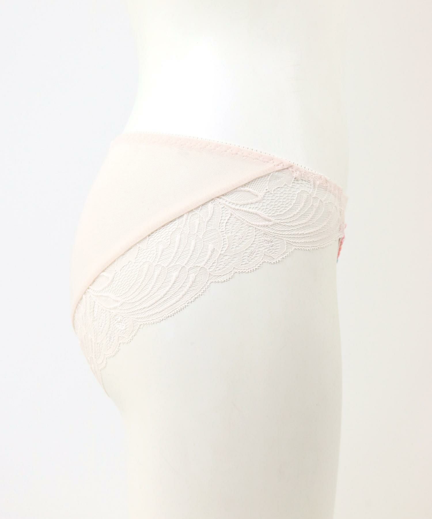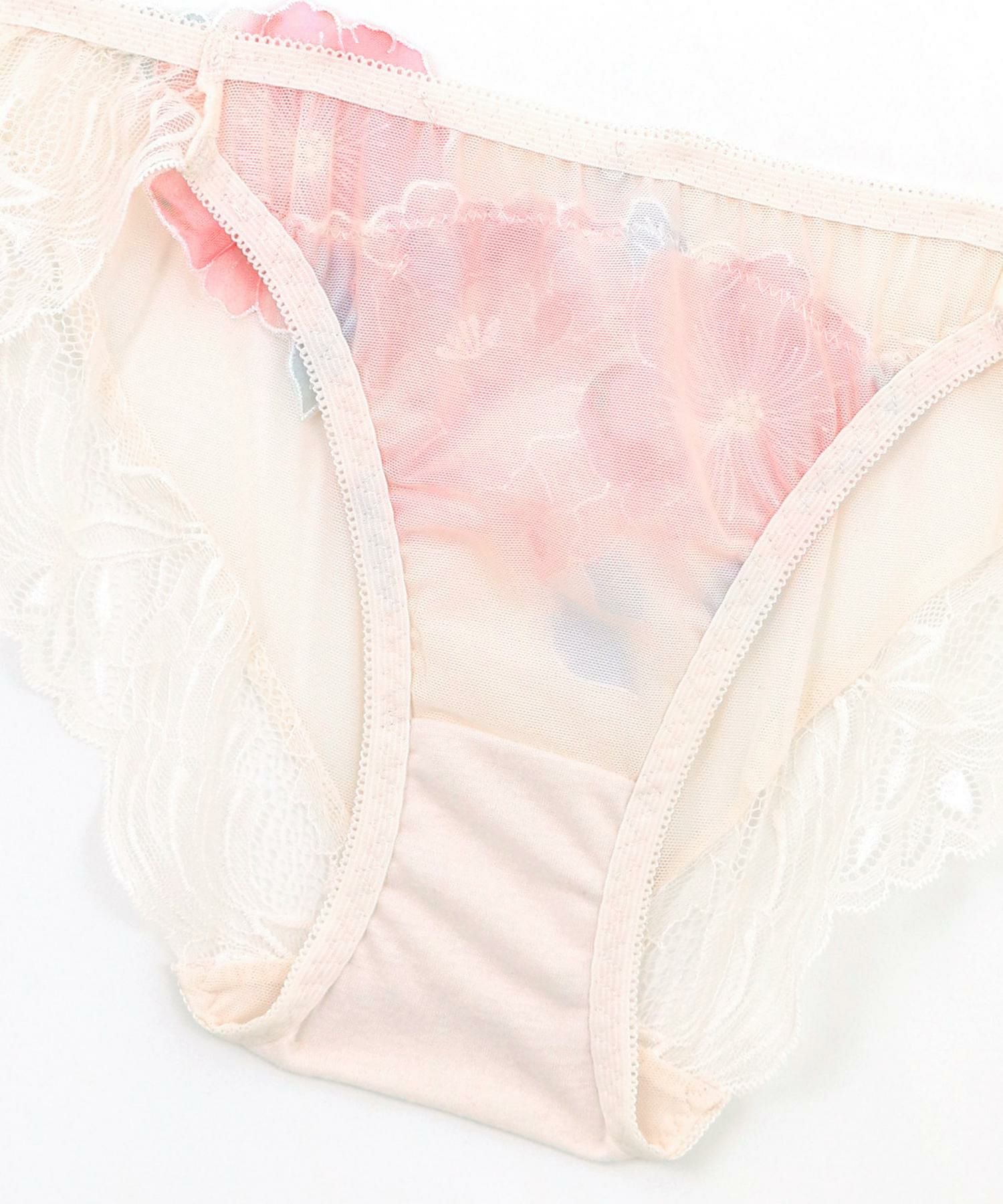 後ろ身ごろは透け感のある生地、レースでは甘すぎるけど透け感のあるデザインショーツにチャレンジしたい方にもオススメのデザイン。