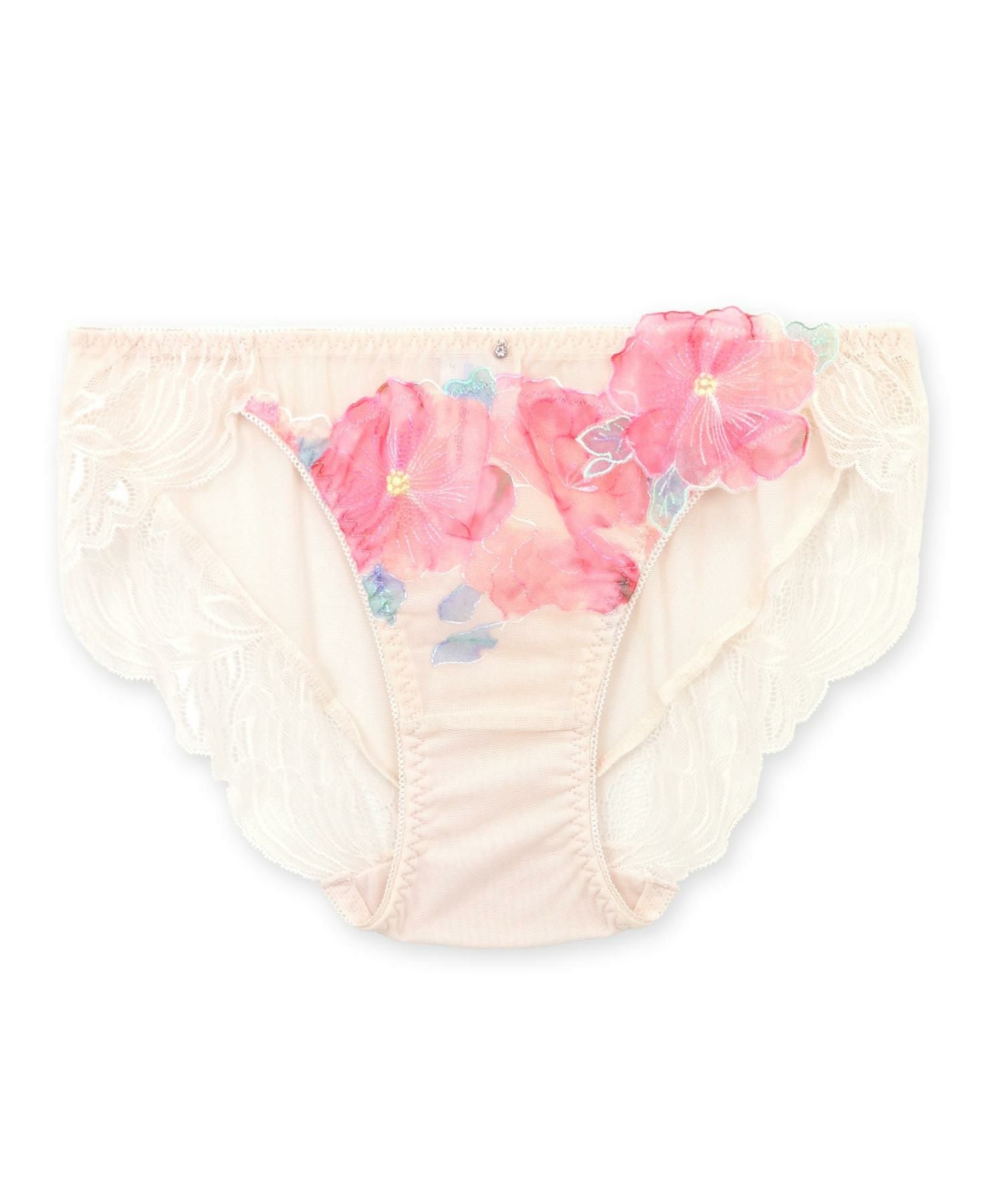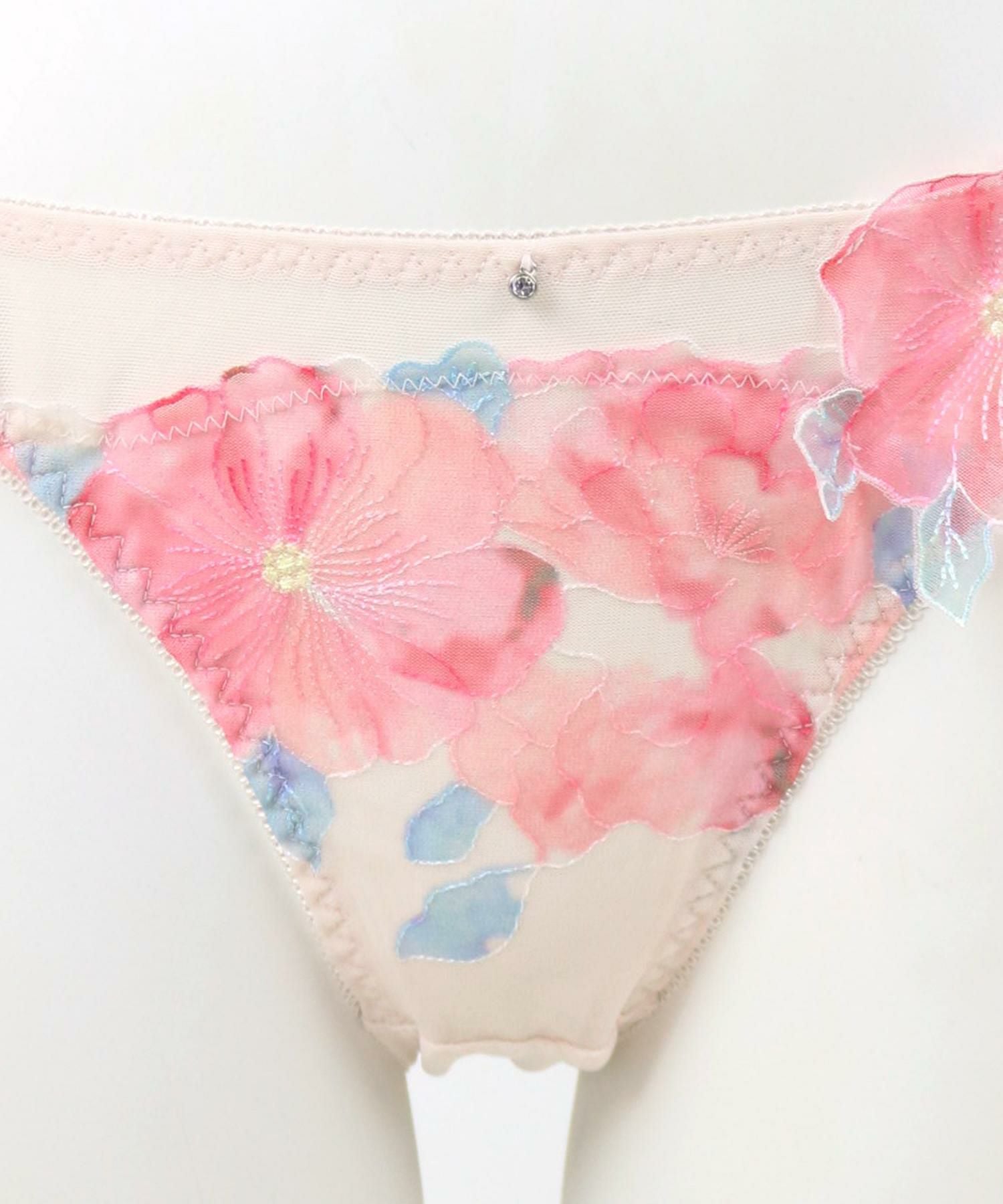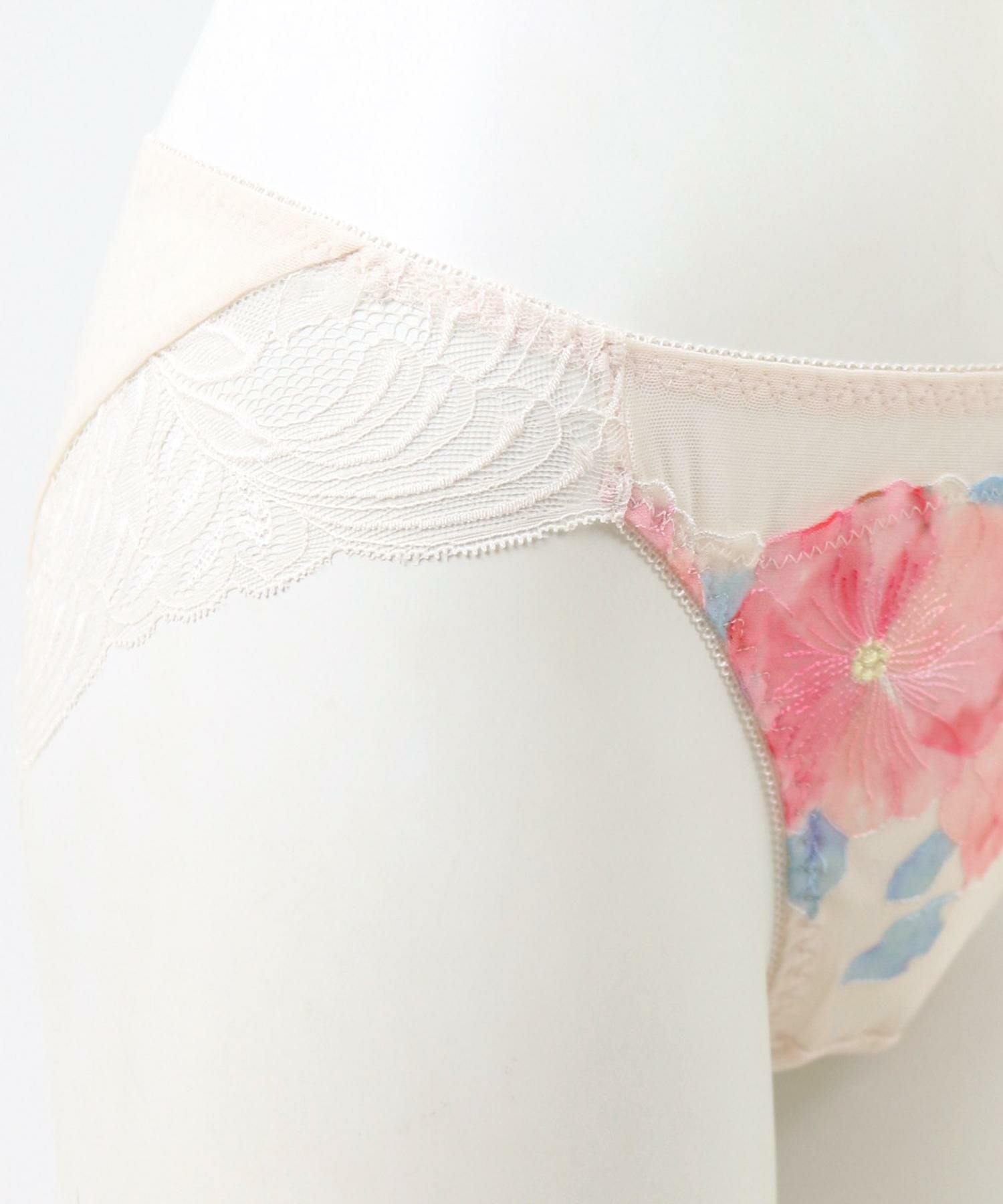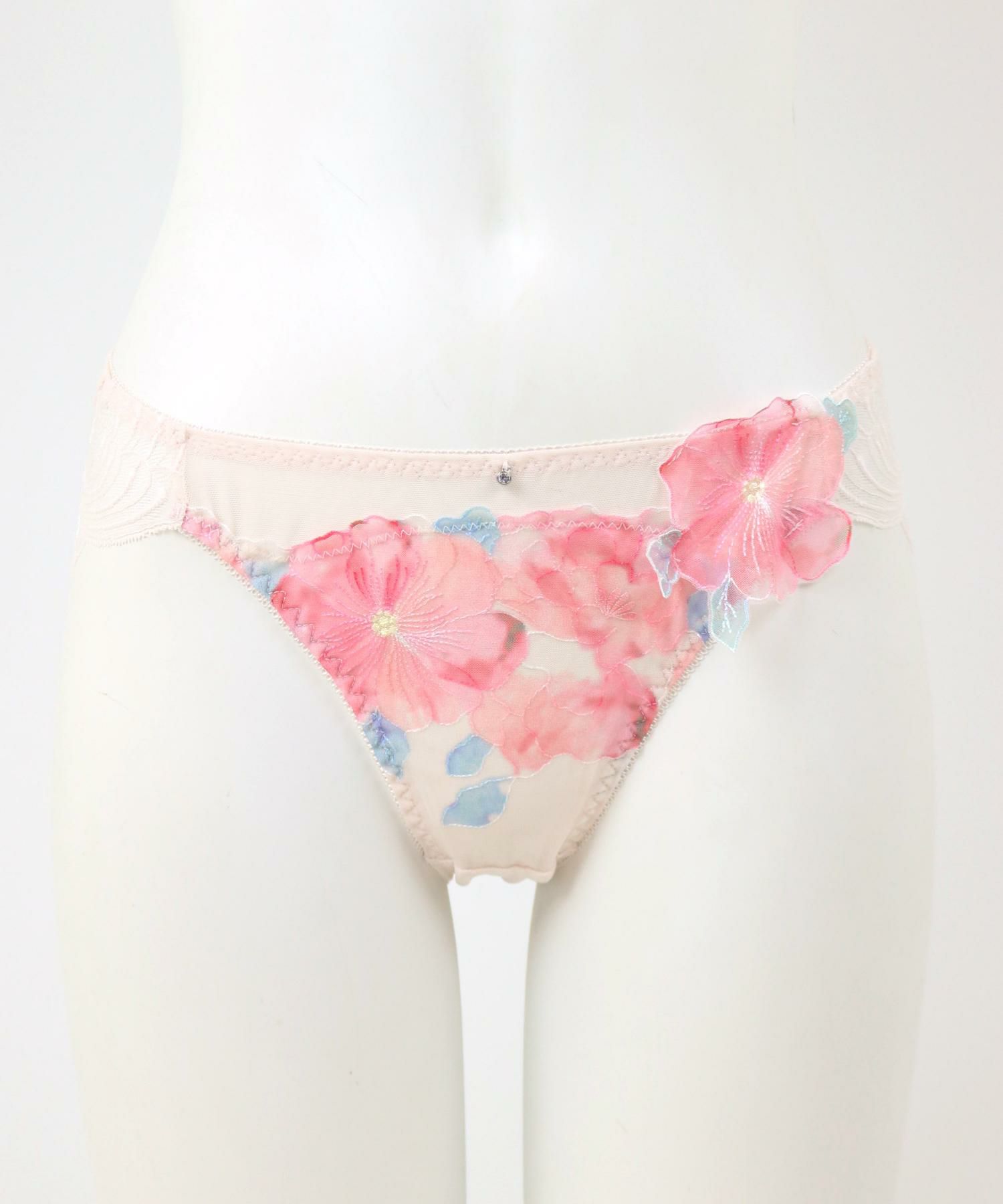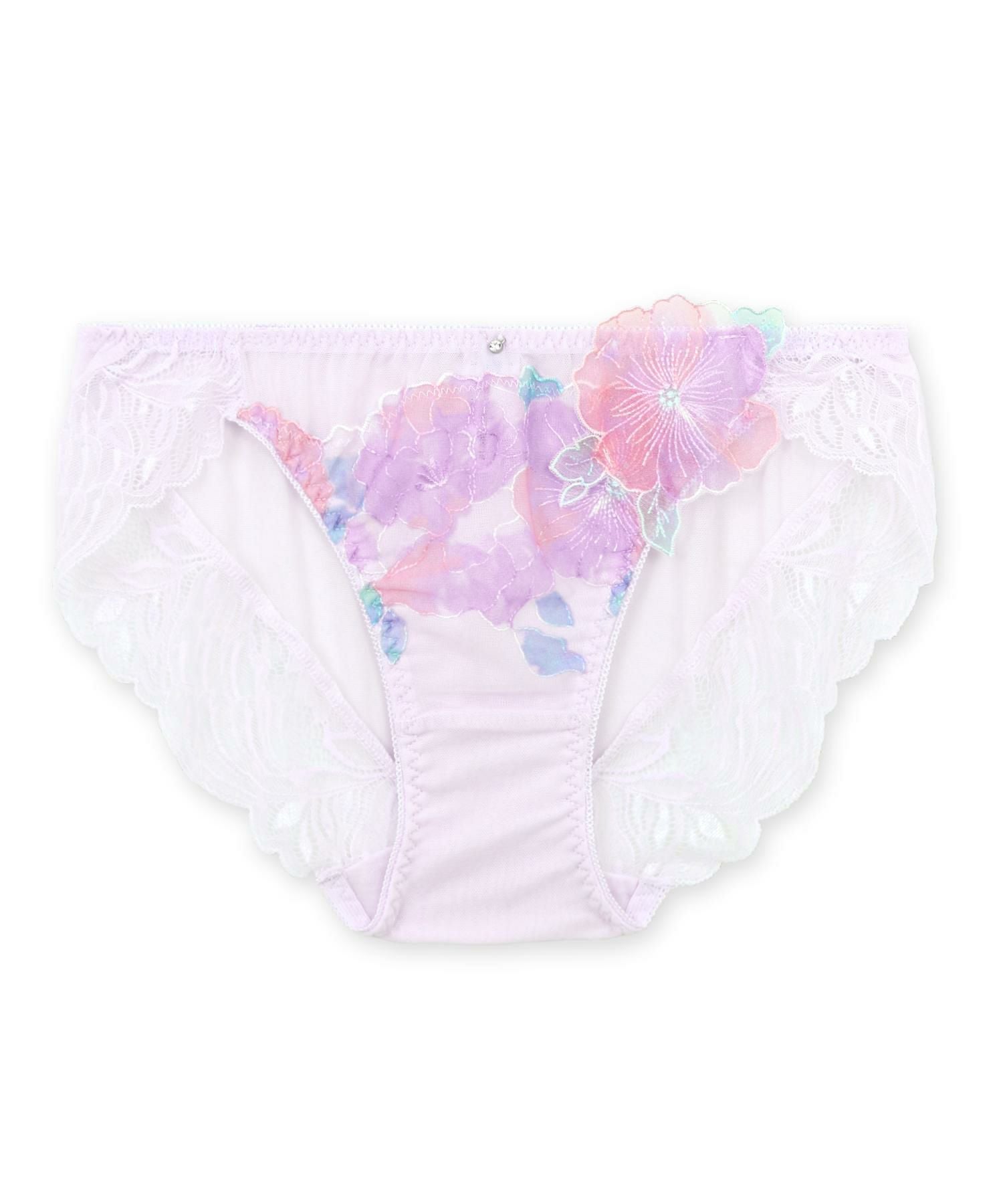後ろ身ごろは透け感のある生地、レースでは甘すぎるけど透け感のあるデザインショーツにチャレンジしたい方にもオススメのデザイン。