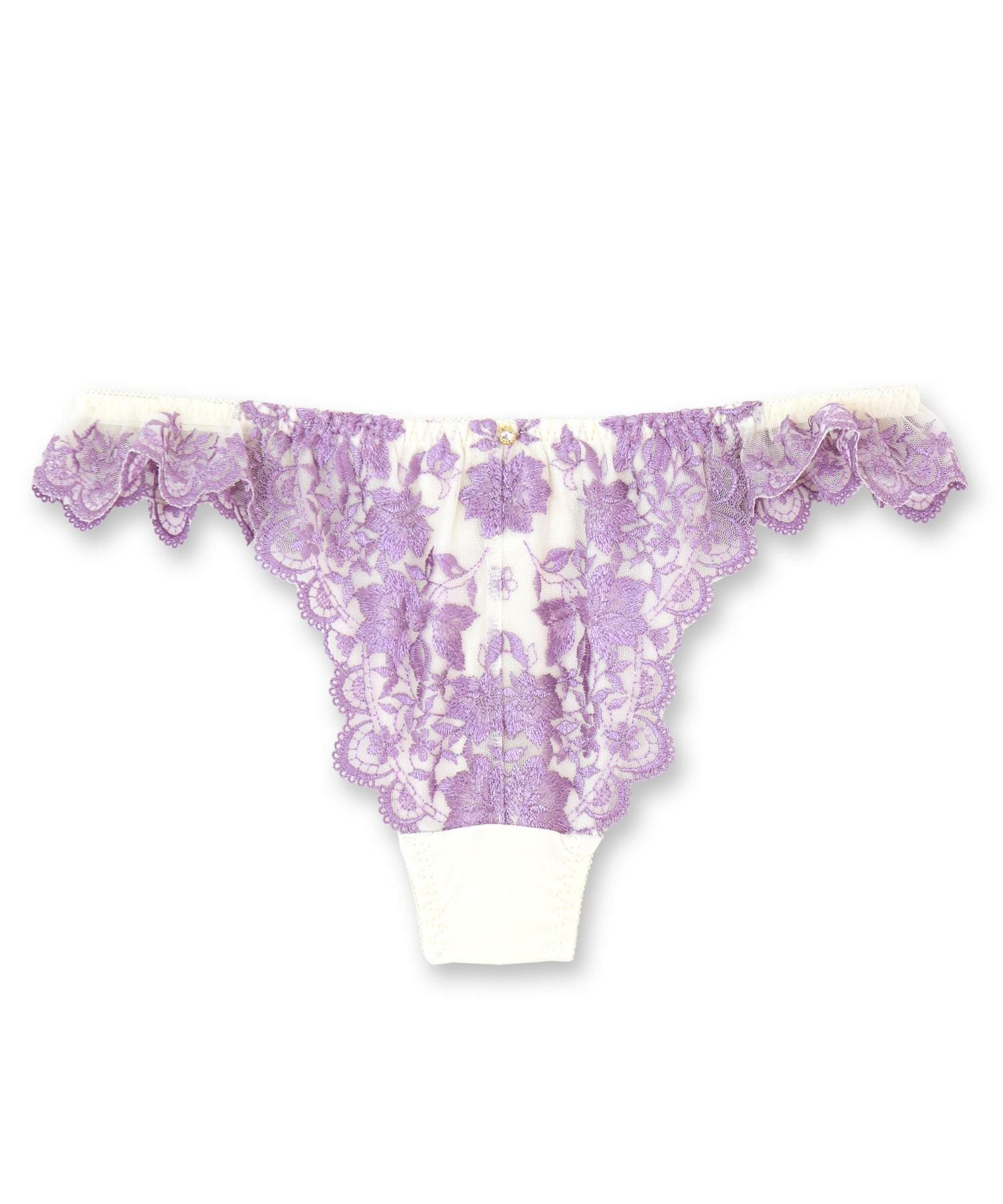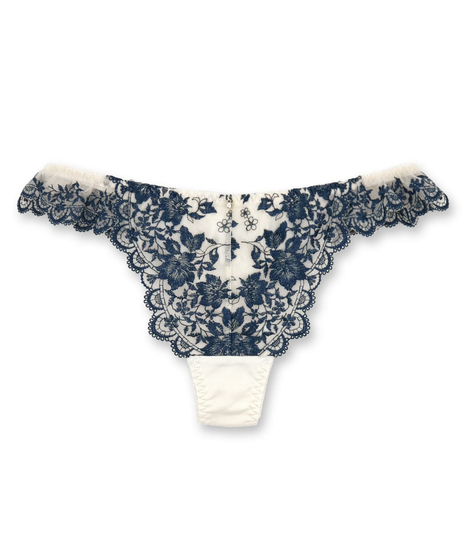 どこかクラシカルで上品な刺繍を施したゴージャスな雰囲気のランジェリー。スカラップレースはサイドだけではなく後ろにもしっかり施されているので、後ろ姿にもうっとり。