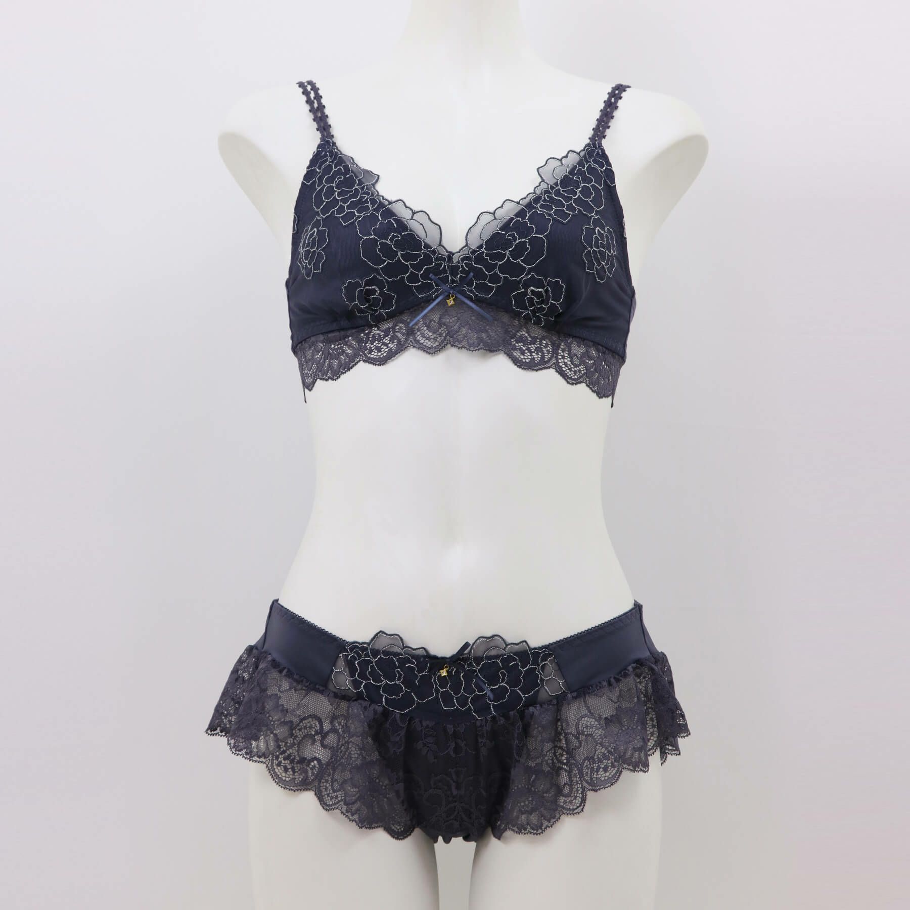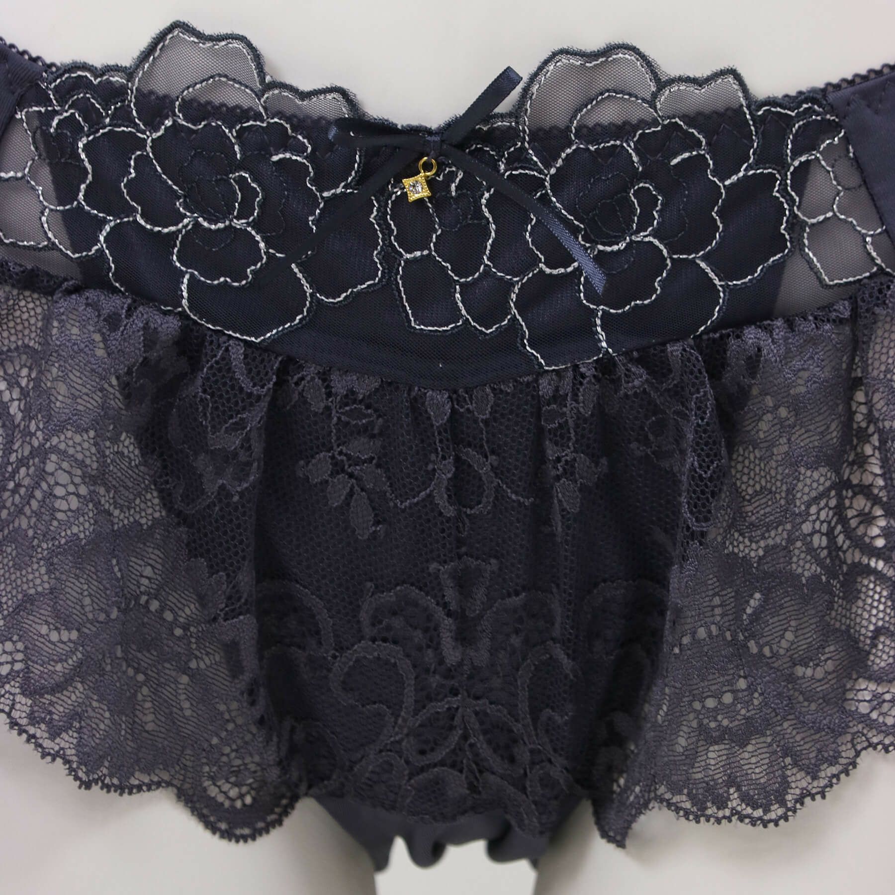 ストレッチレースに刺繍レースを重ねたシリーズならではの贅沢なデザイン。