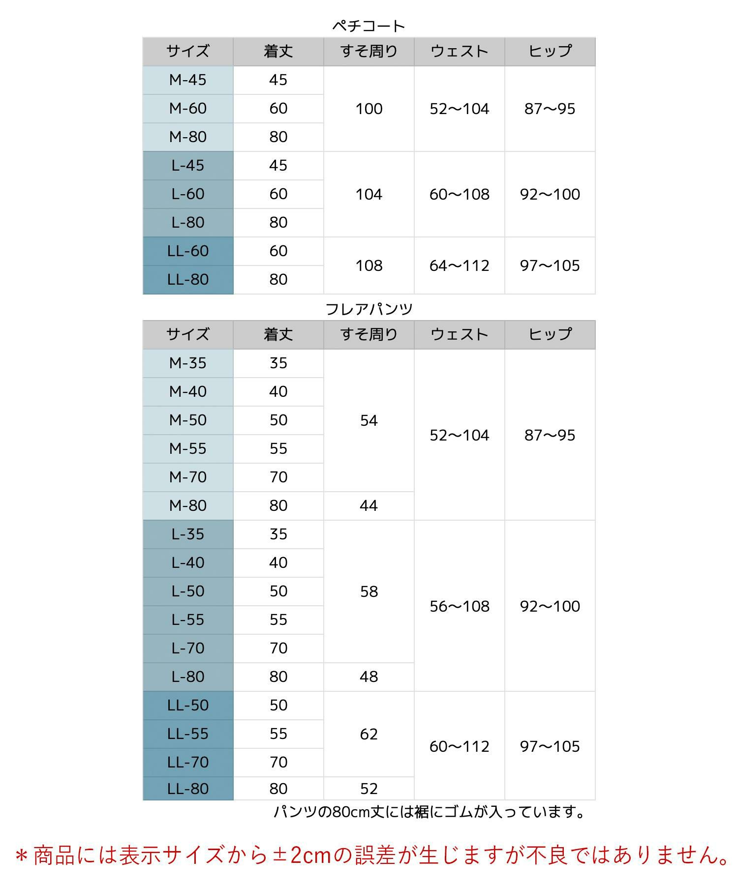 -- 丈が選べるシンプル・ペチコート&フレアパンツ --