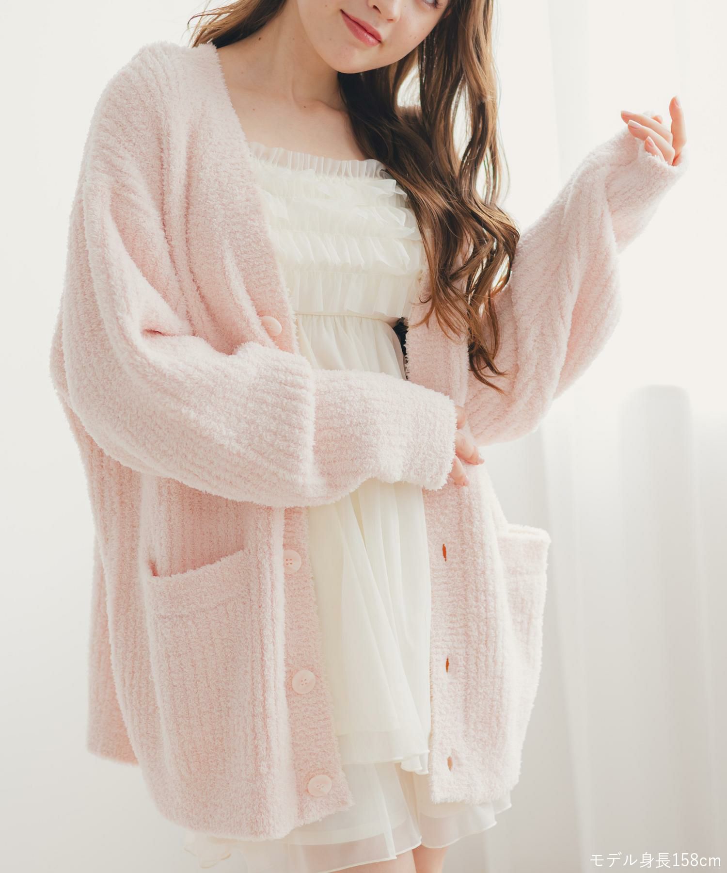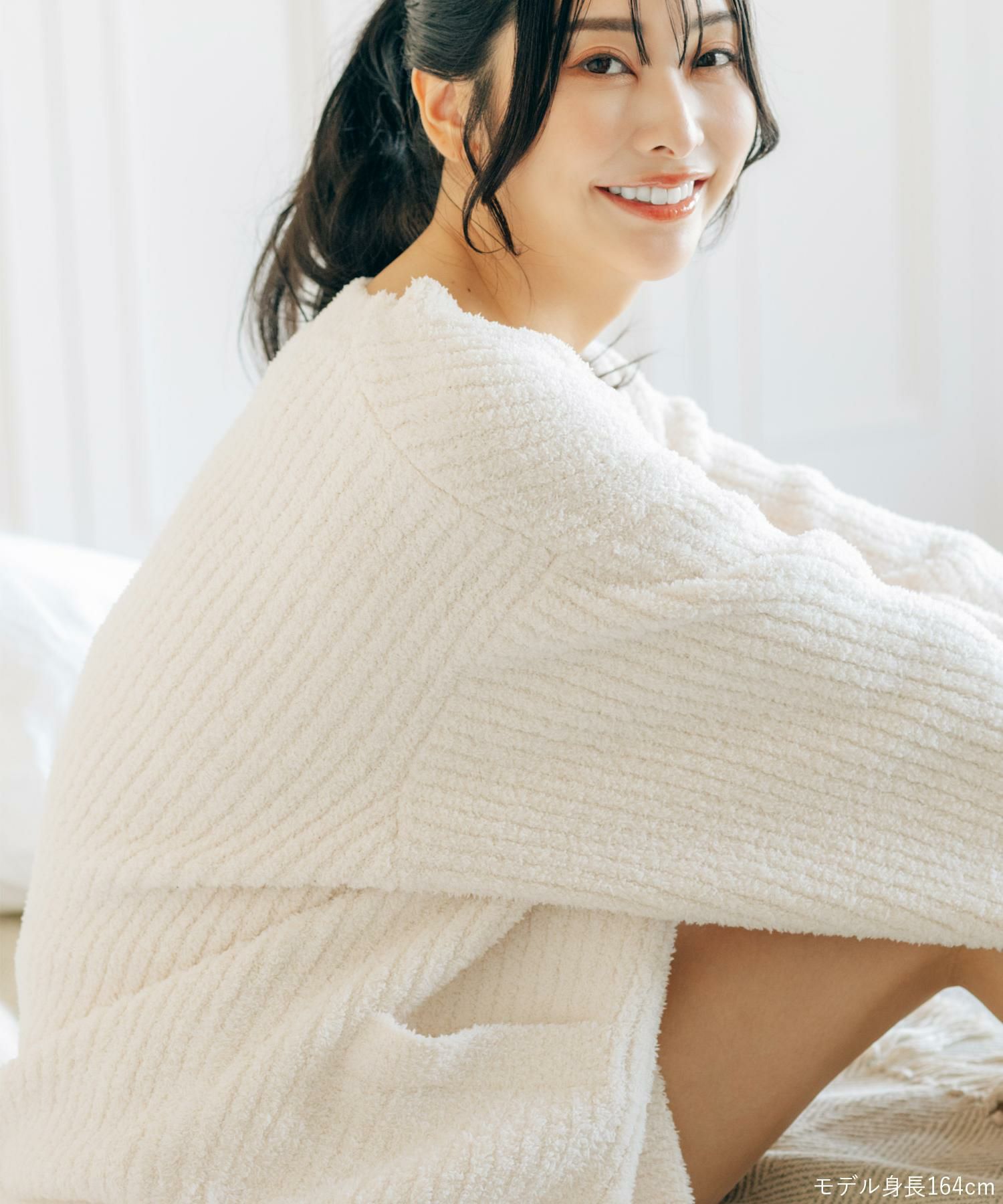 ユニセックスが嬉しい楽ちんニット ふわふわ&さらさらの極上手触り 「パウダーもこ ガウン」