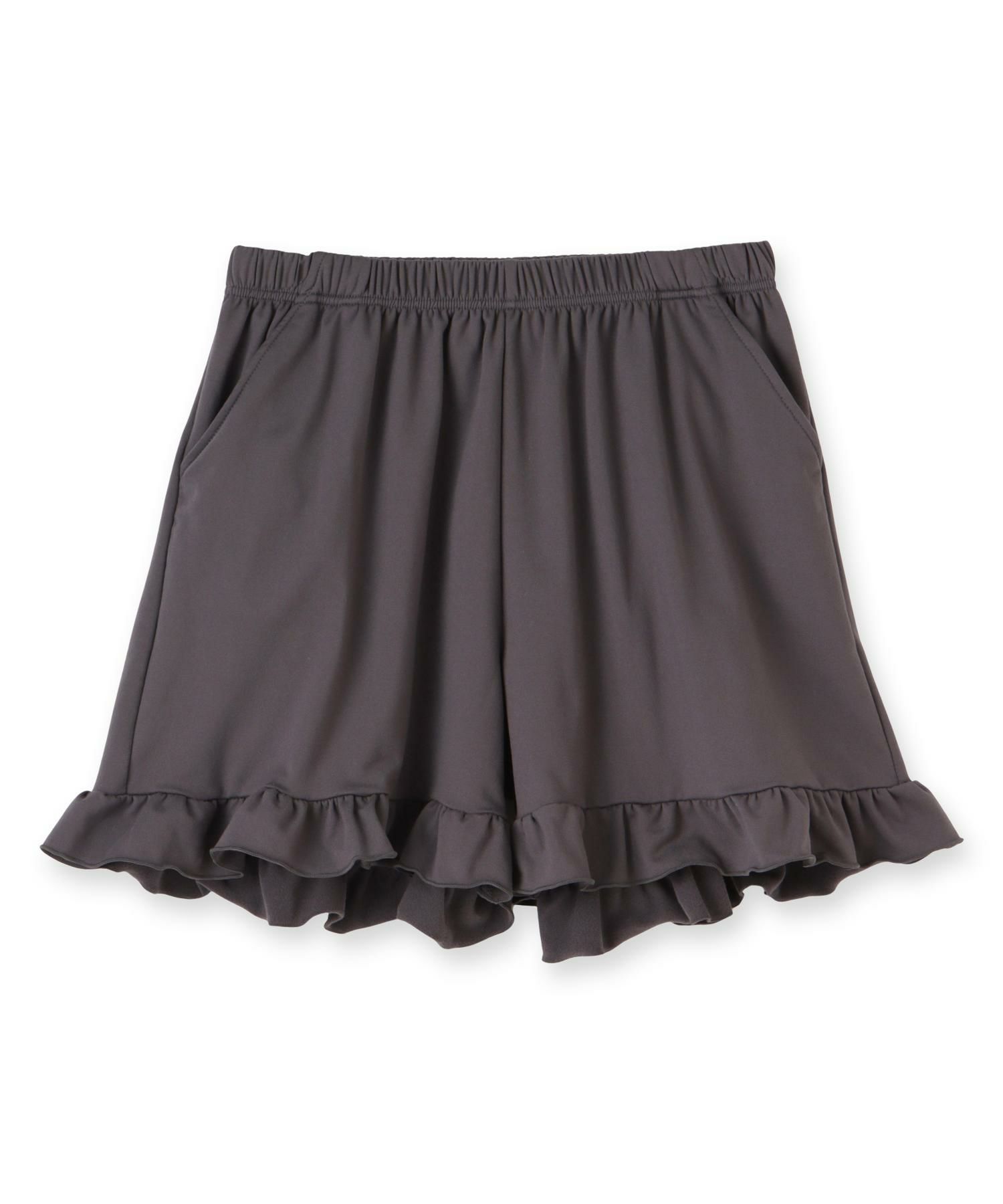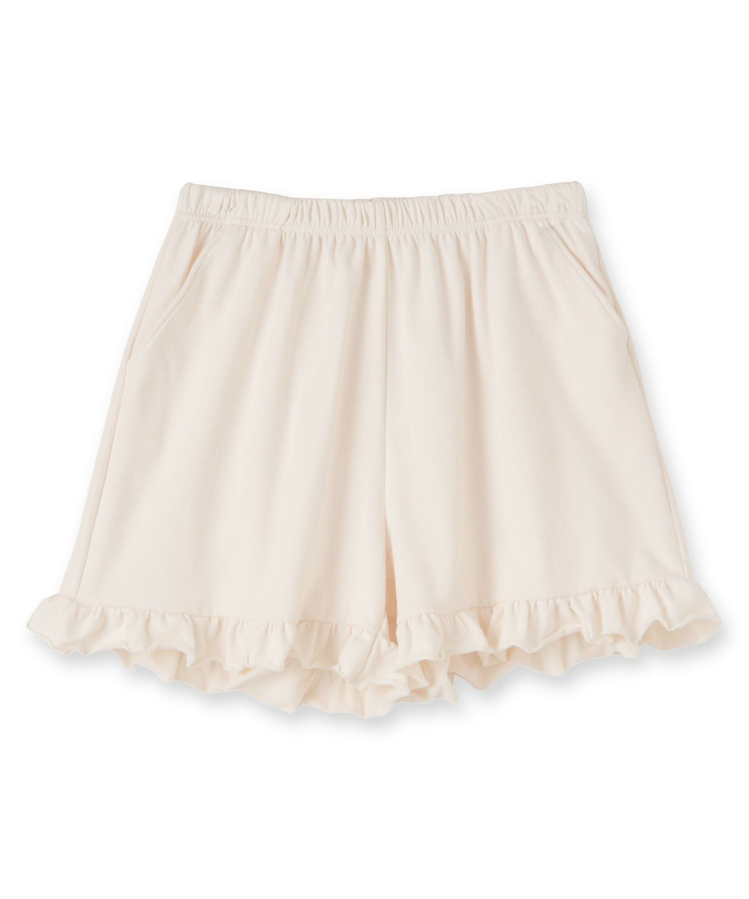 ナイトブラ付きルームウェアとお揃いの裾のフリルがフェミニンなショートパンツ。リラックスタイムにぴったりの心地よい肌触りで単品使いもおすすめ。サイドポケット付き。