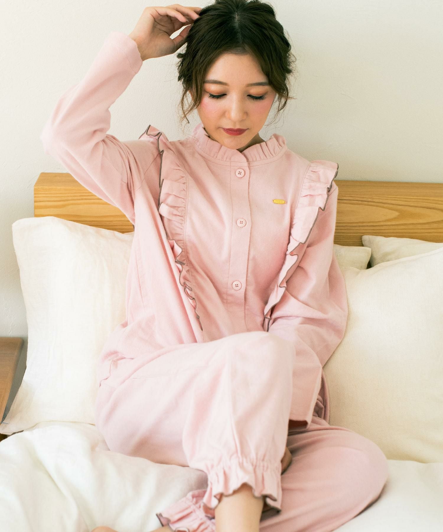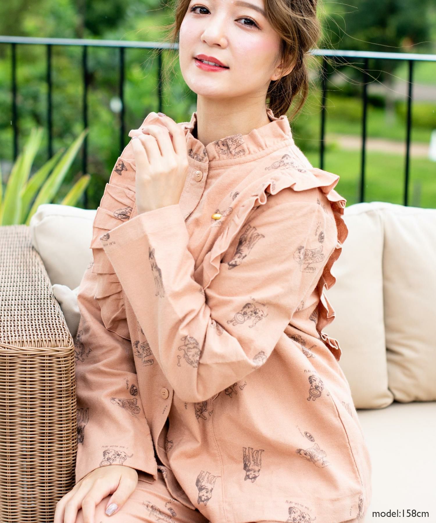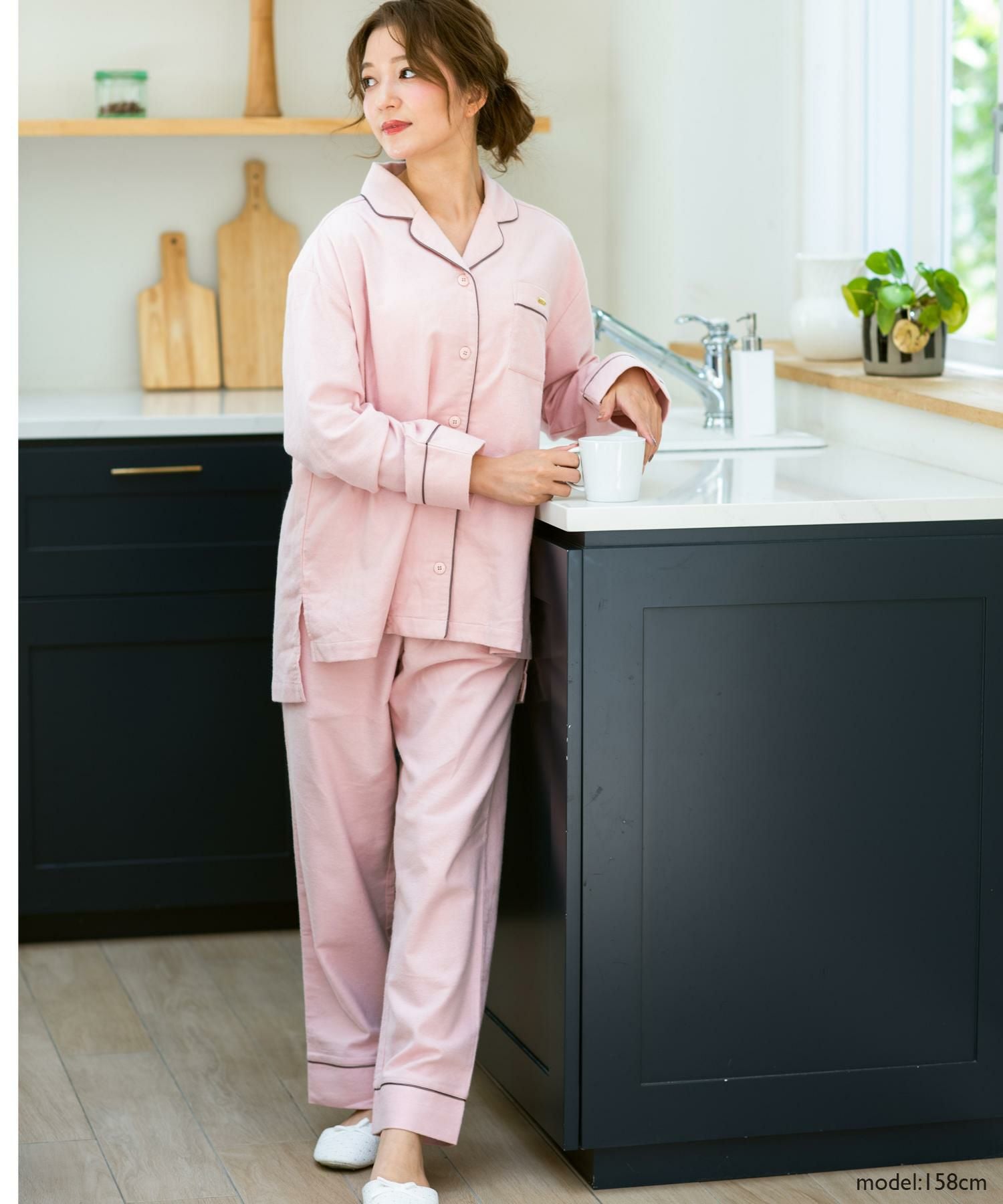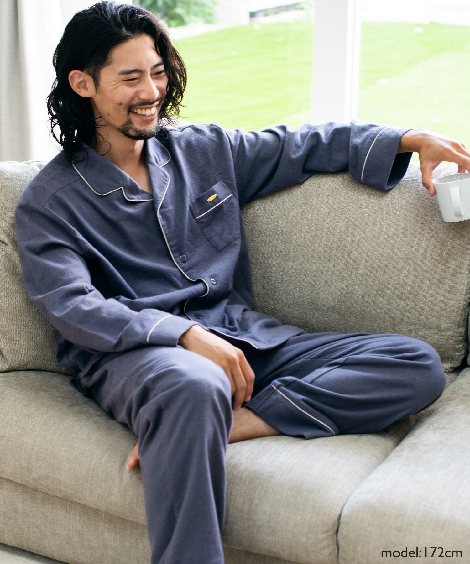cotton flannel前開き・上下セットパジャマ