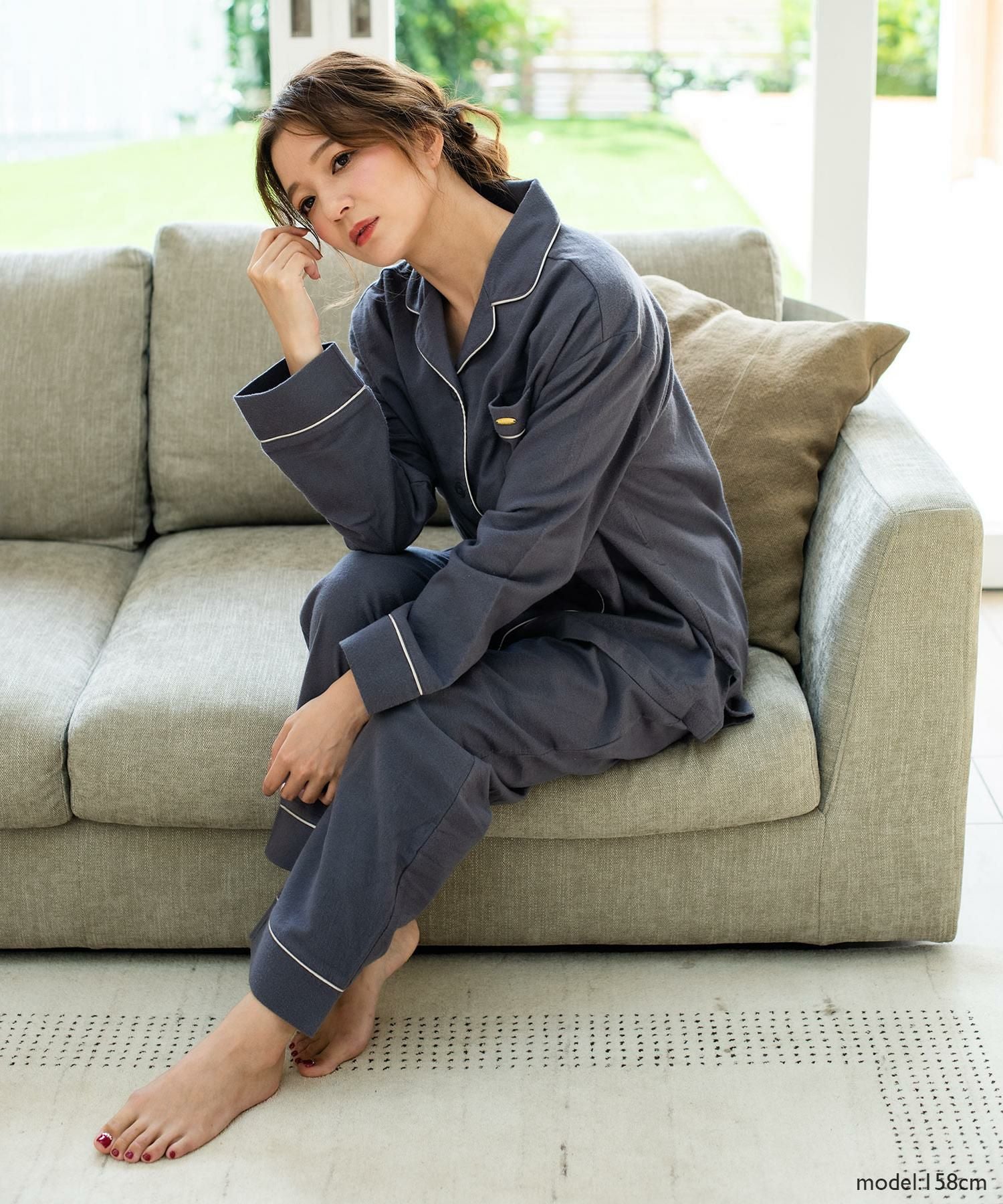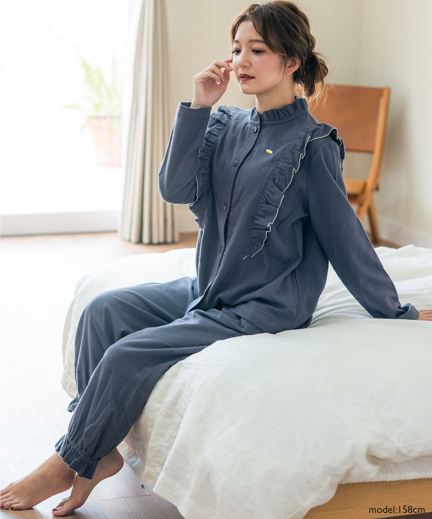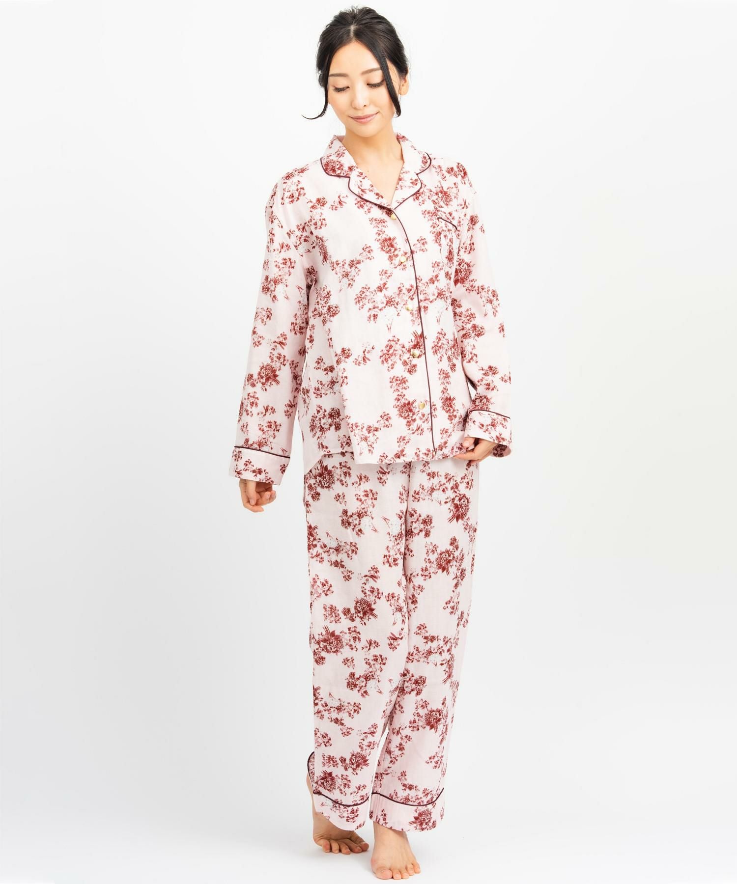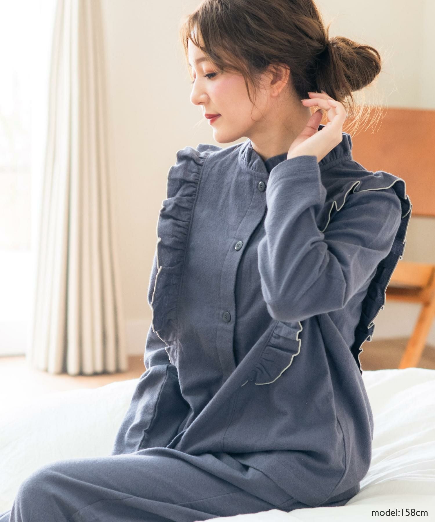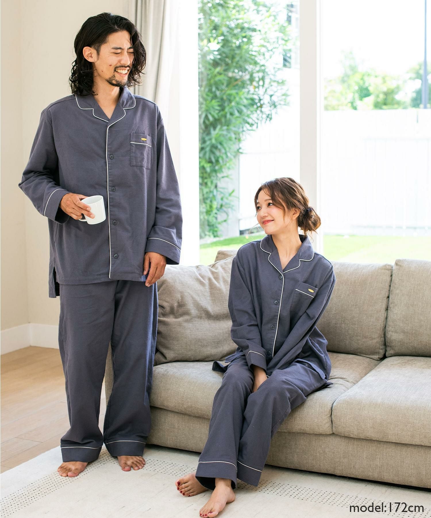 cotton flannel前開き・上下セットパジャマ
