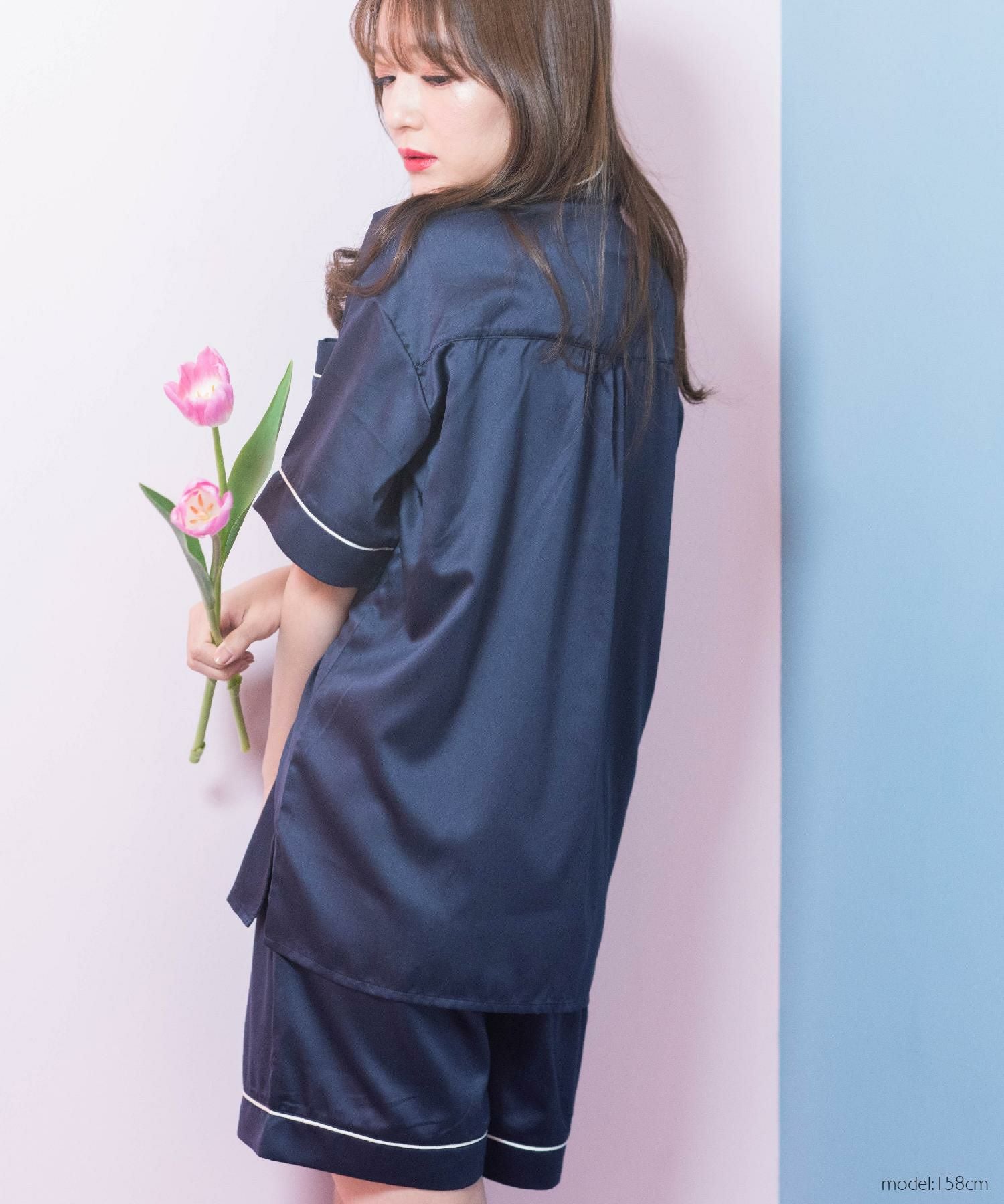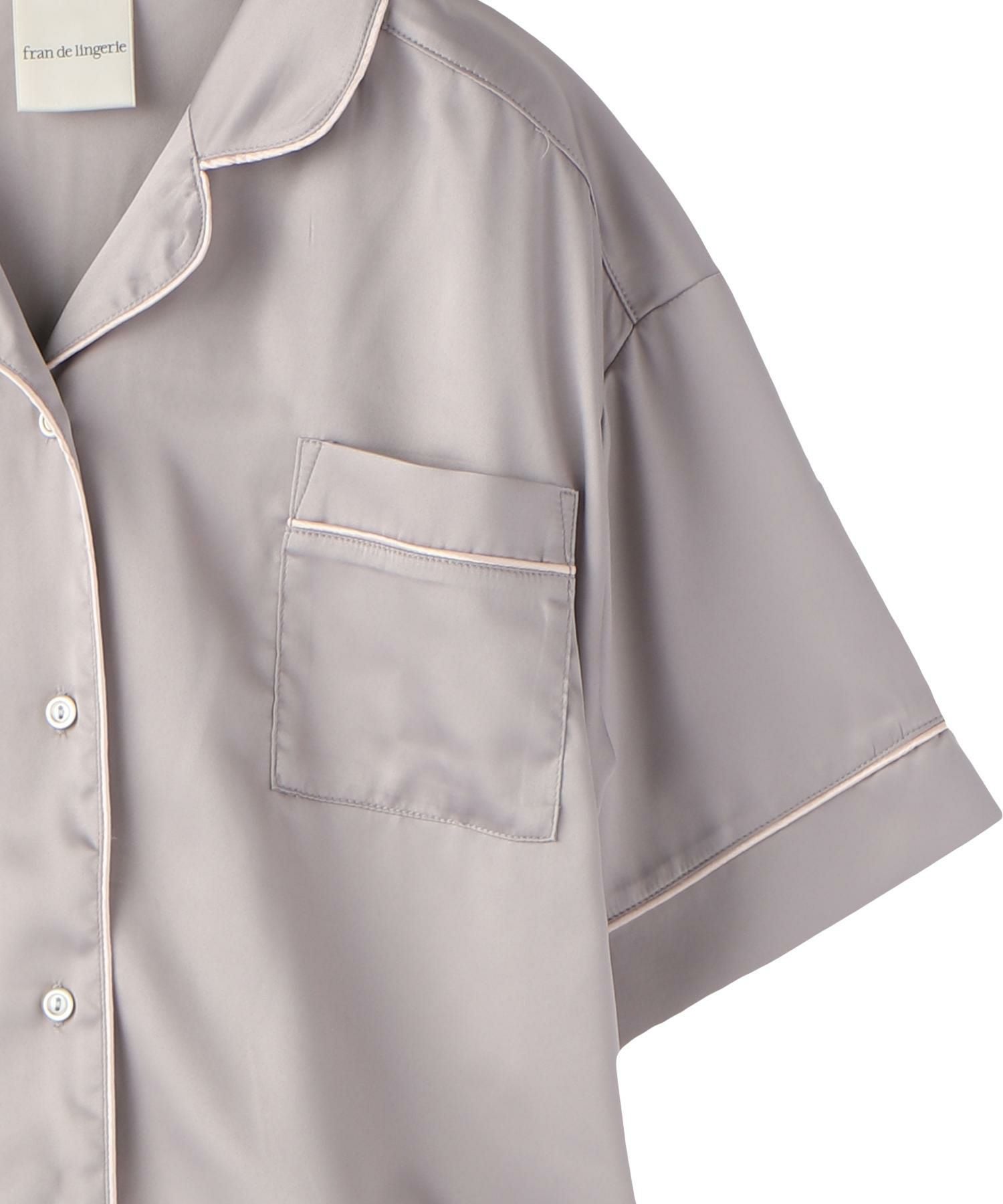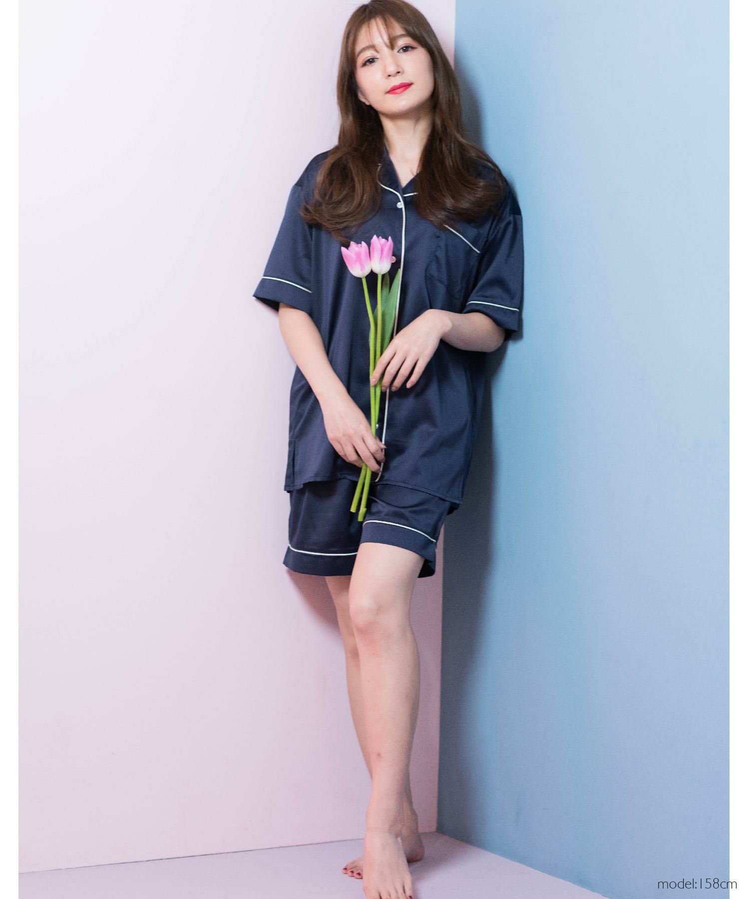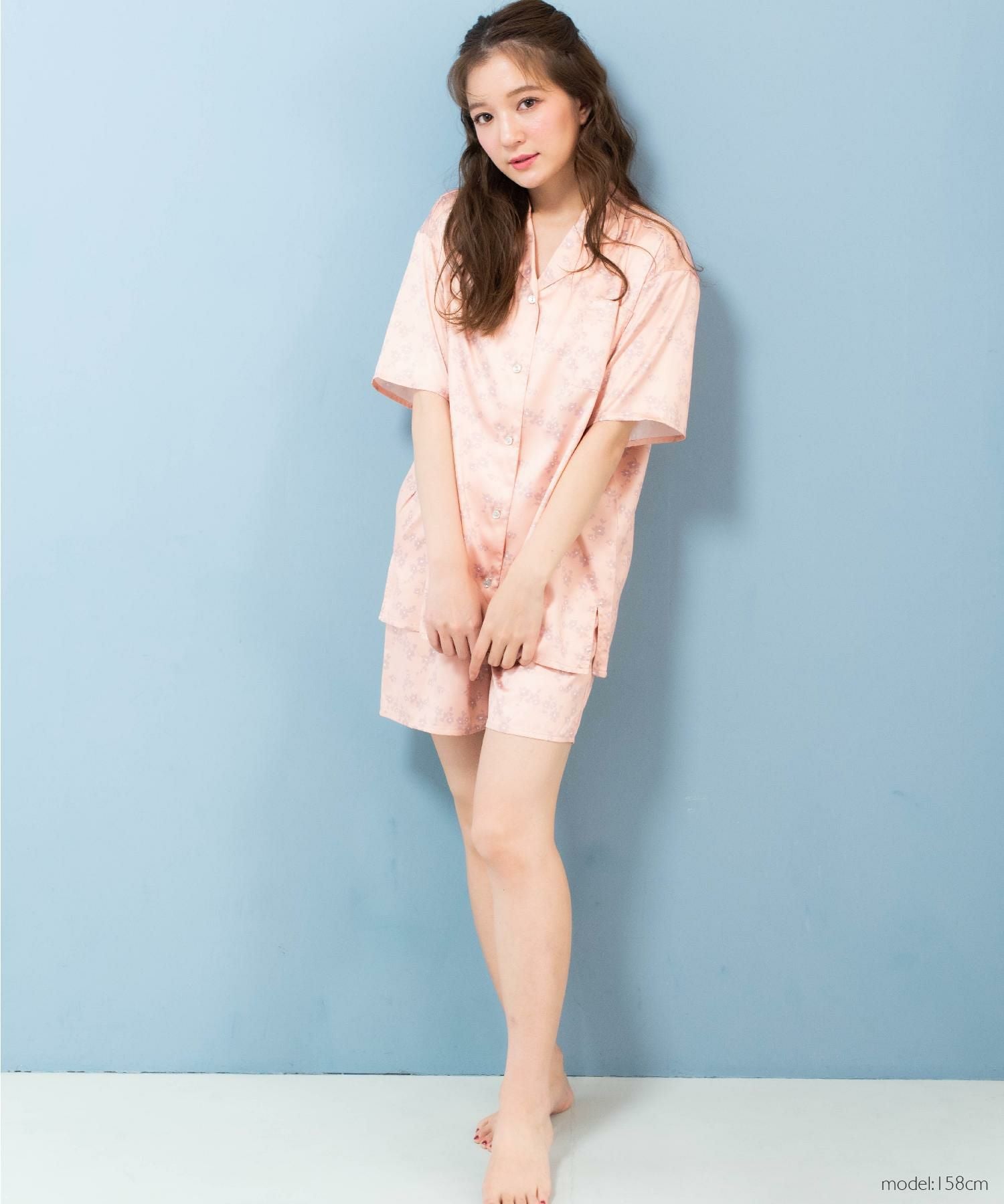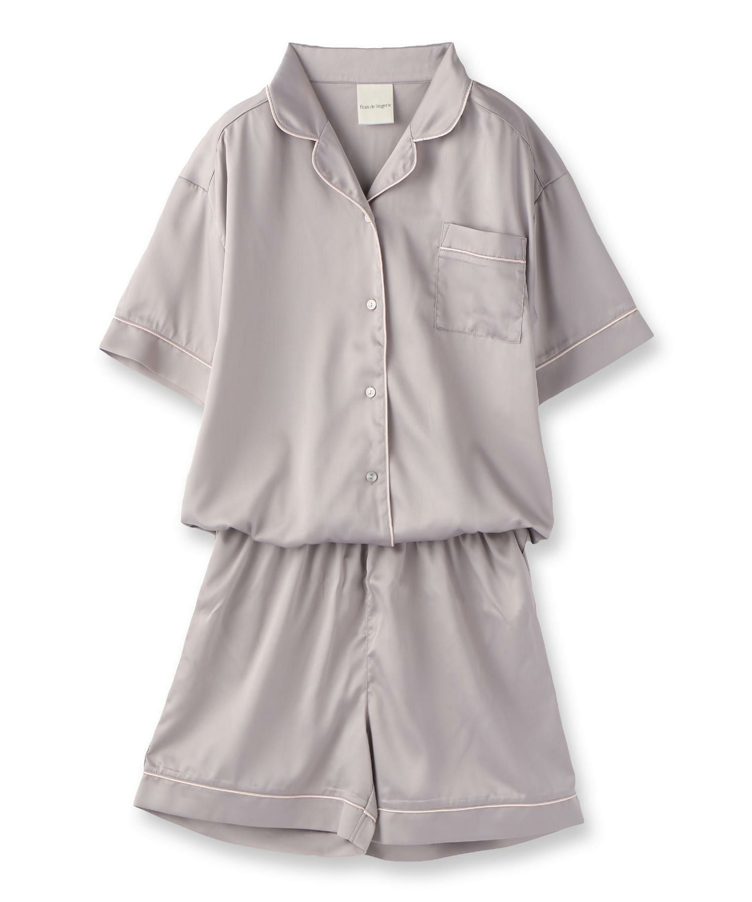 milky-satin半袖パジャマシャツ・ハーフパンツ上下セット