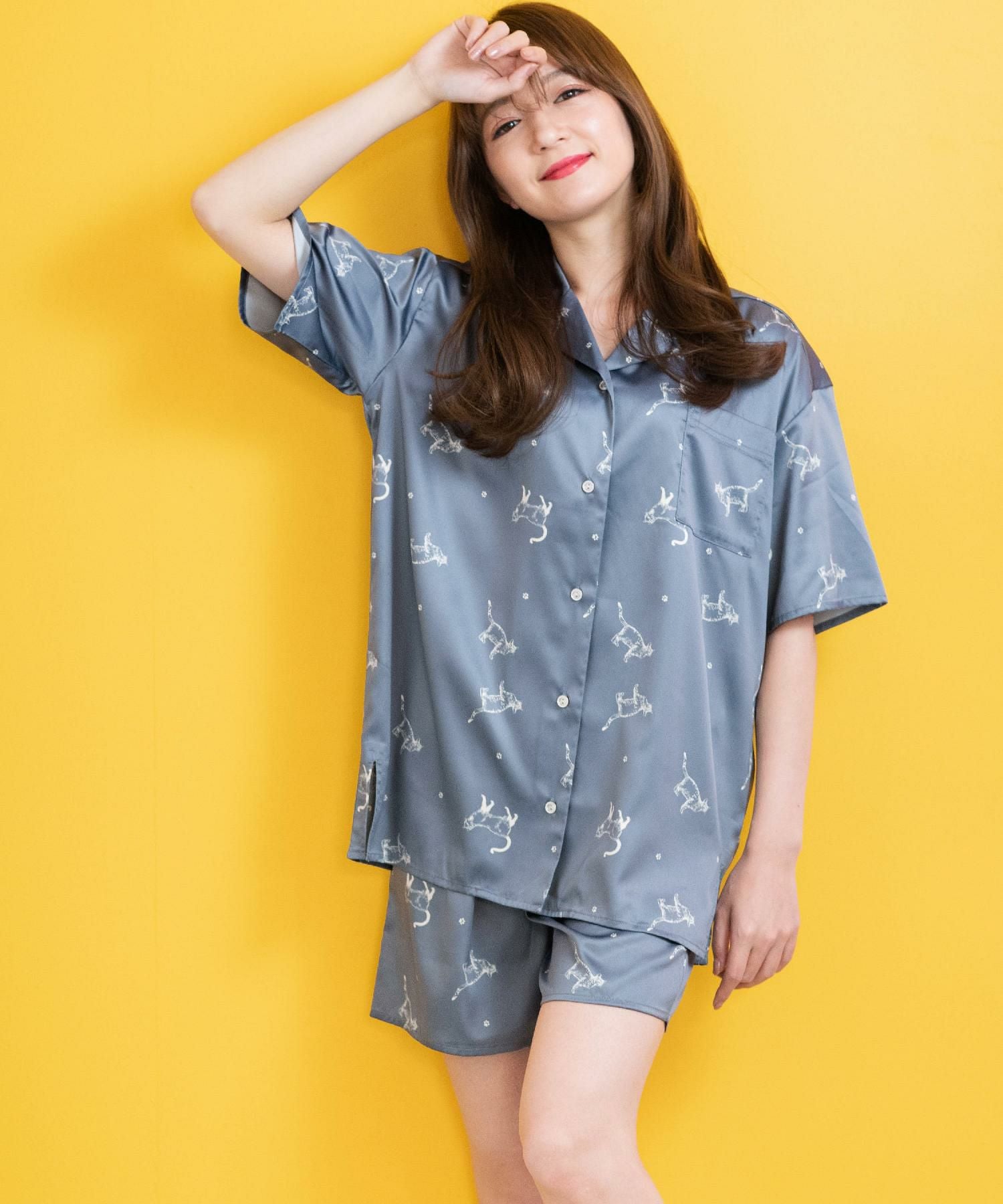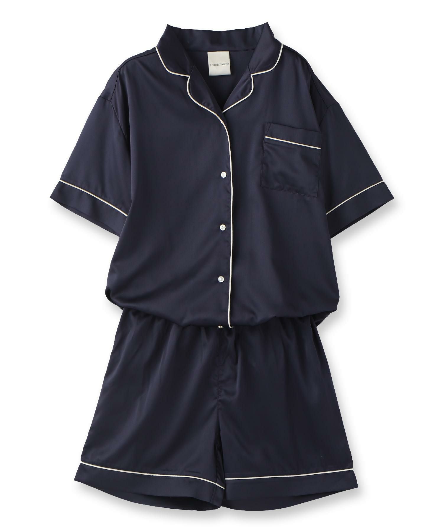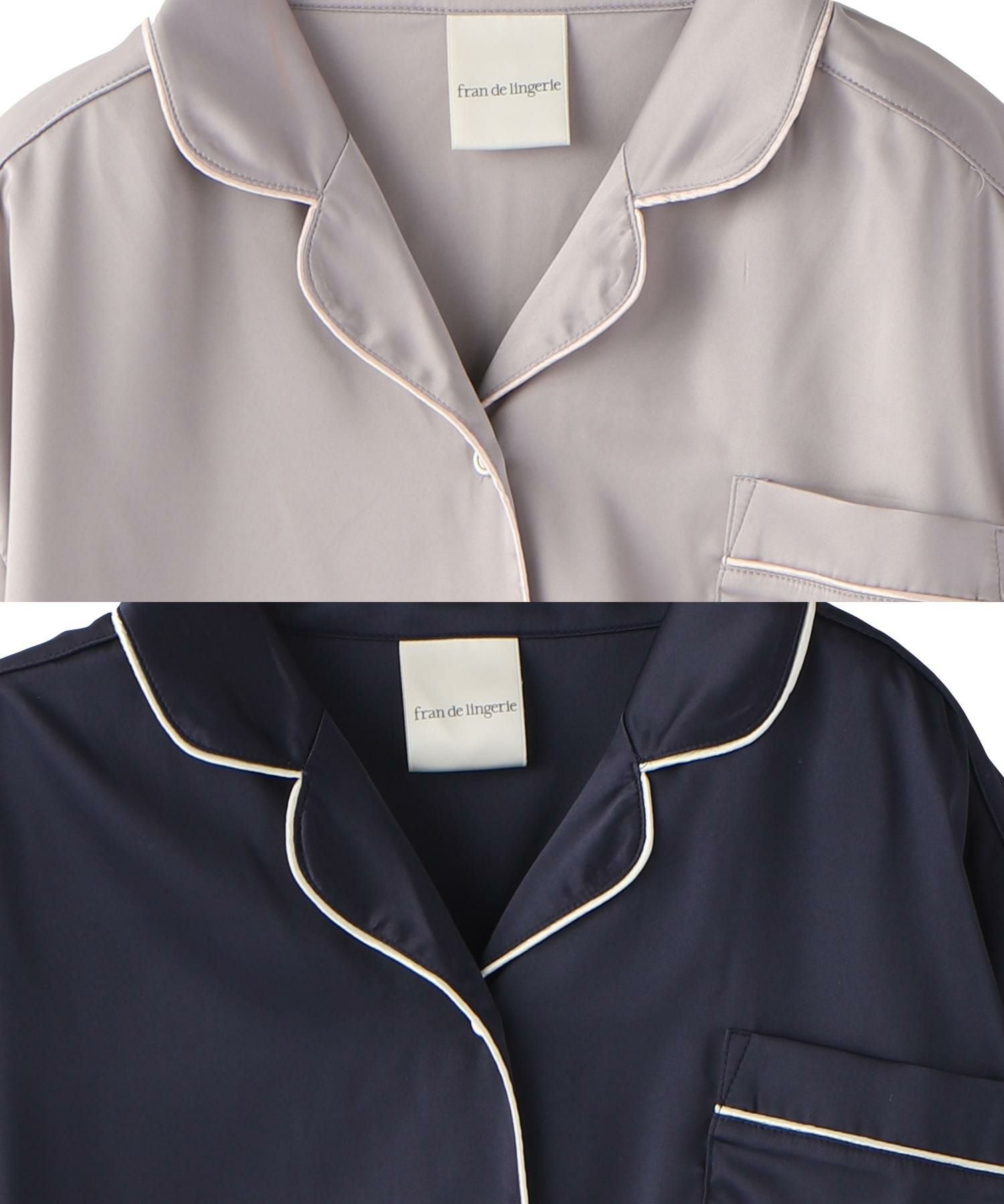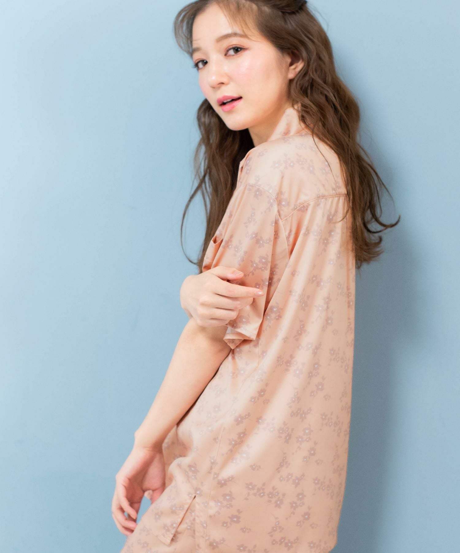 milky-satin半袖パジャマシャツ・ハーフパンツ上下セット