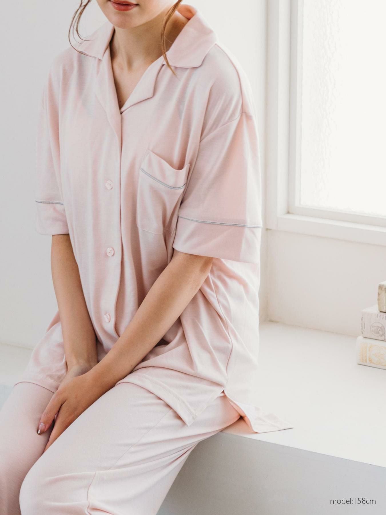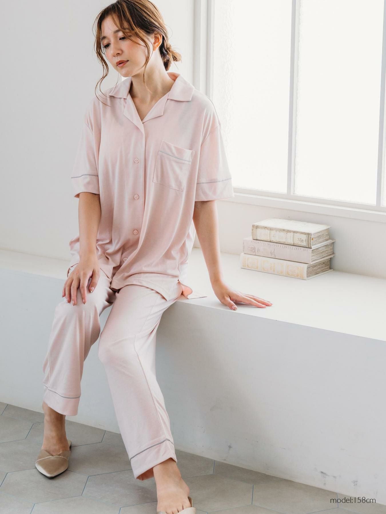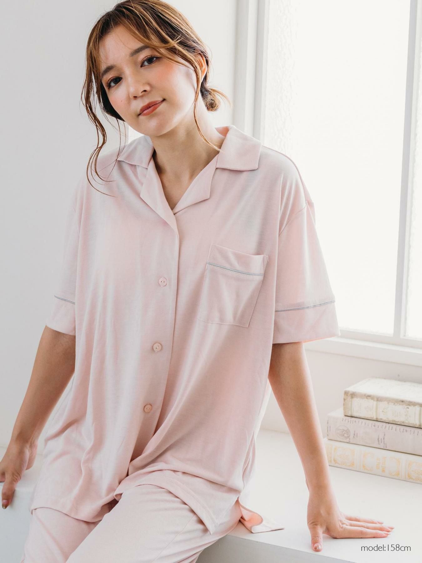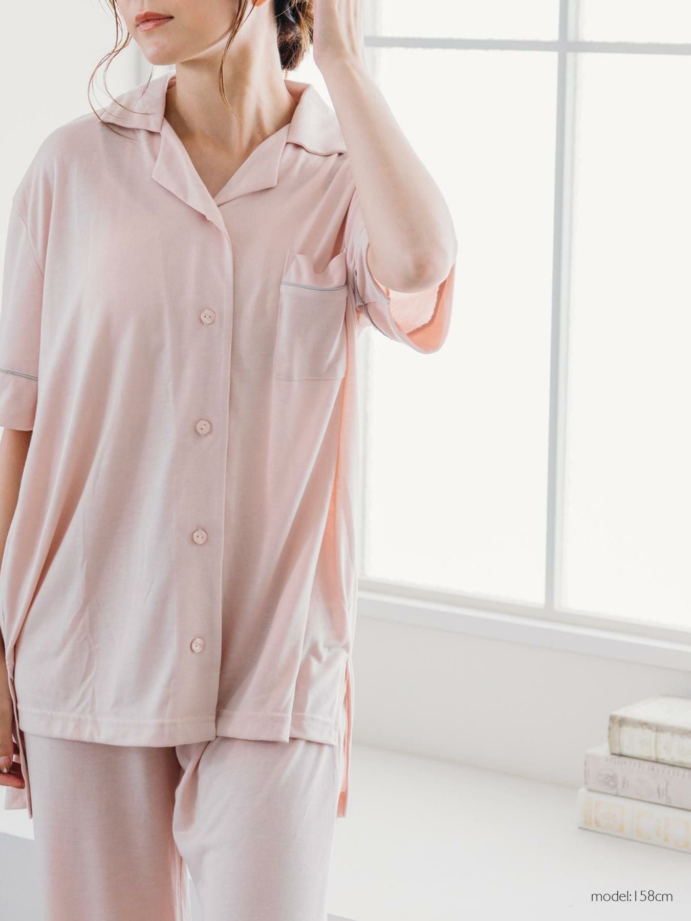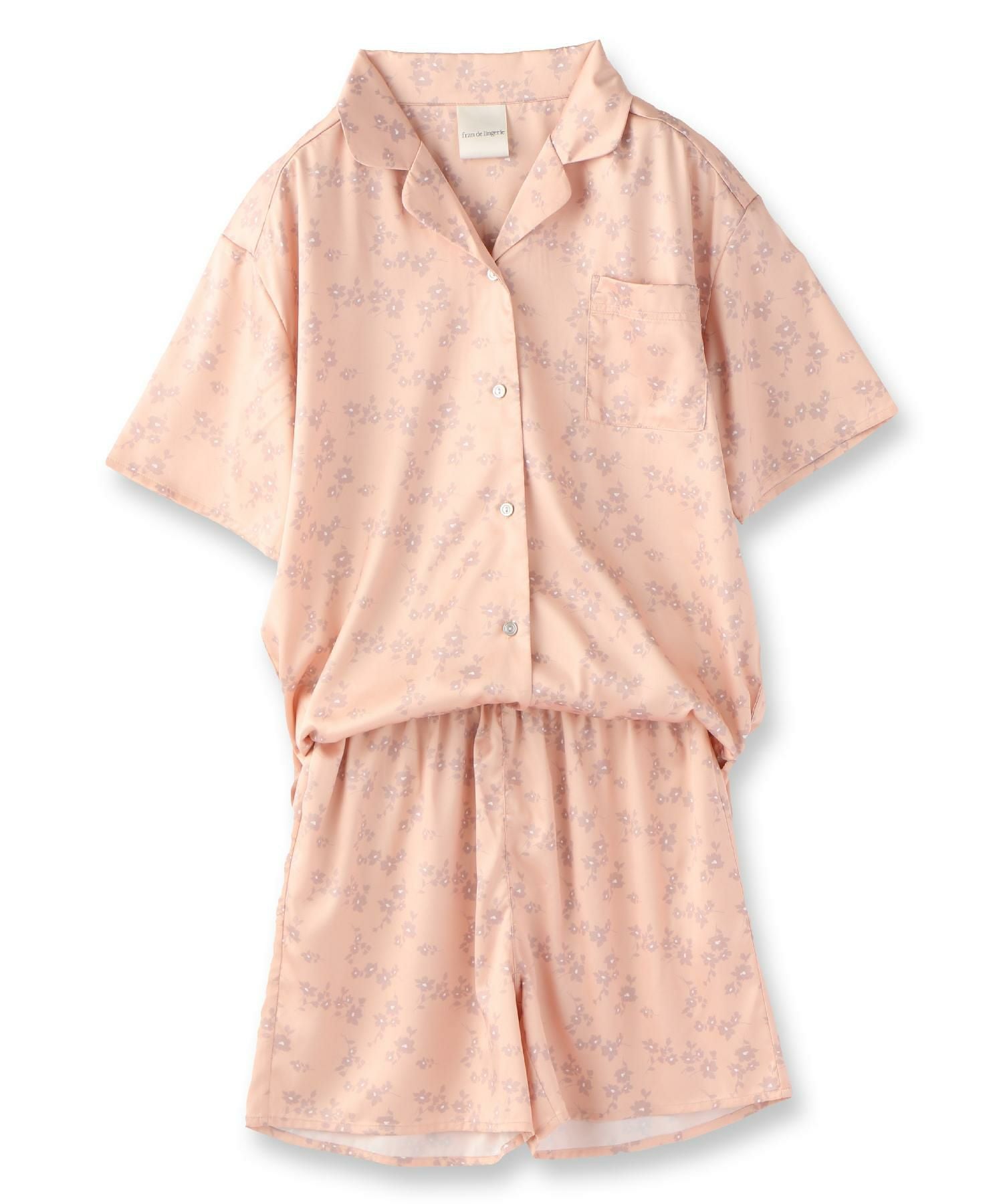 milky-satin半袖パジャマシャツ・ハーフパンツ上下セット