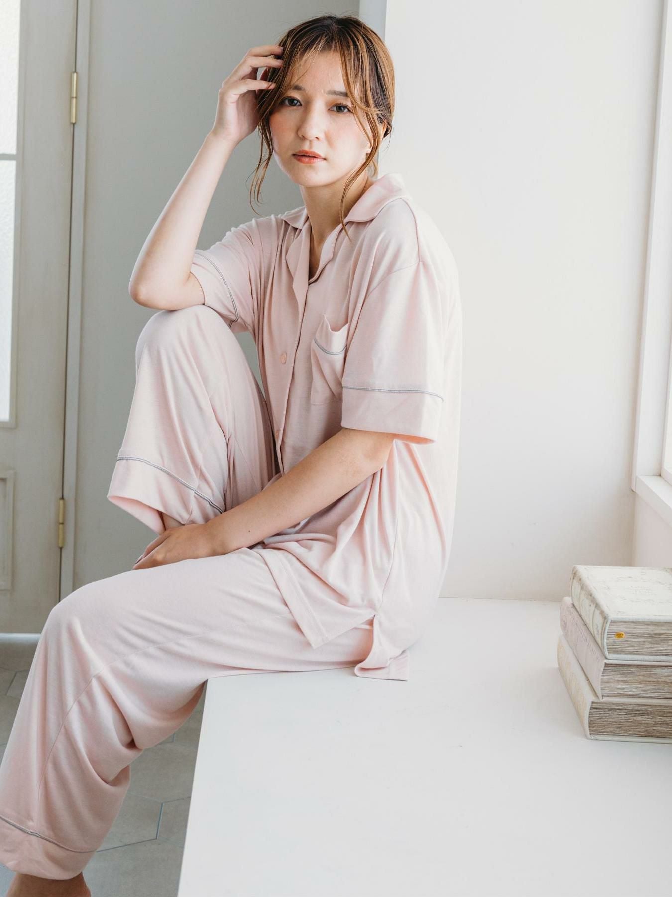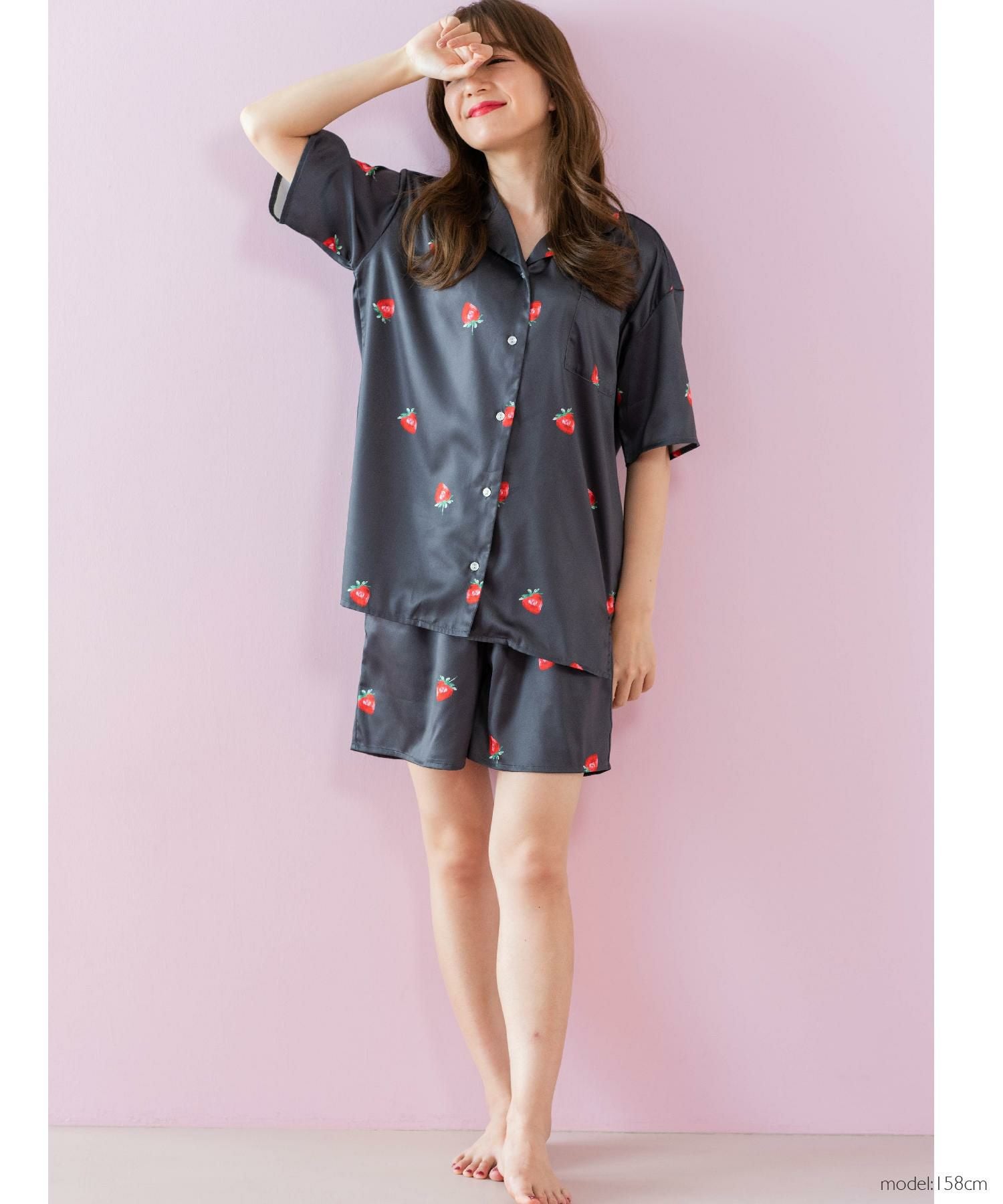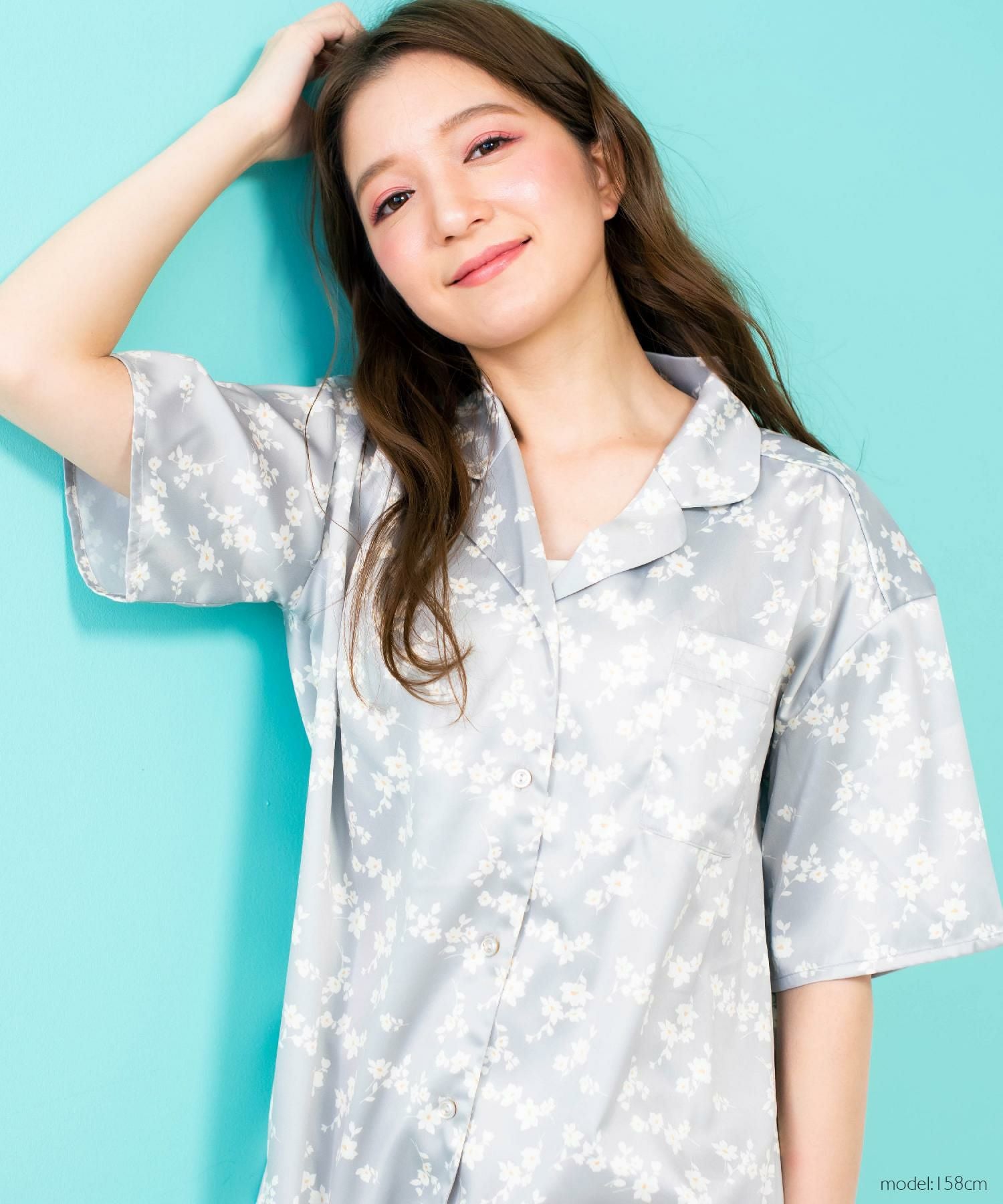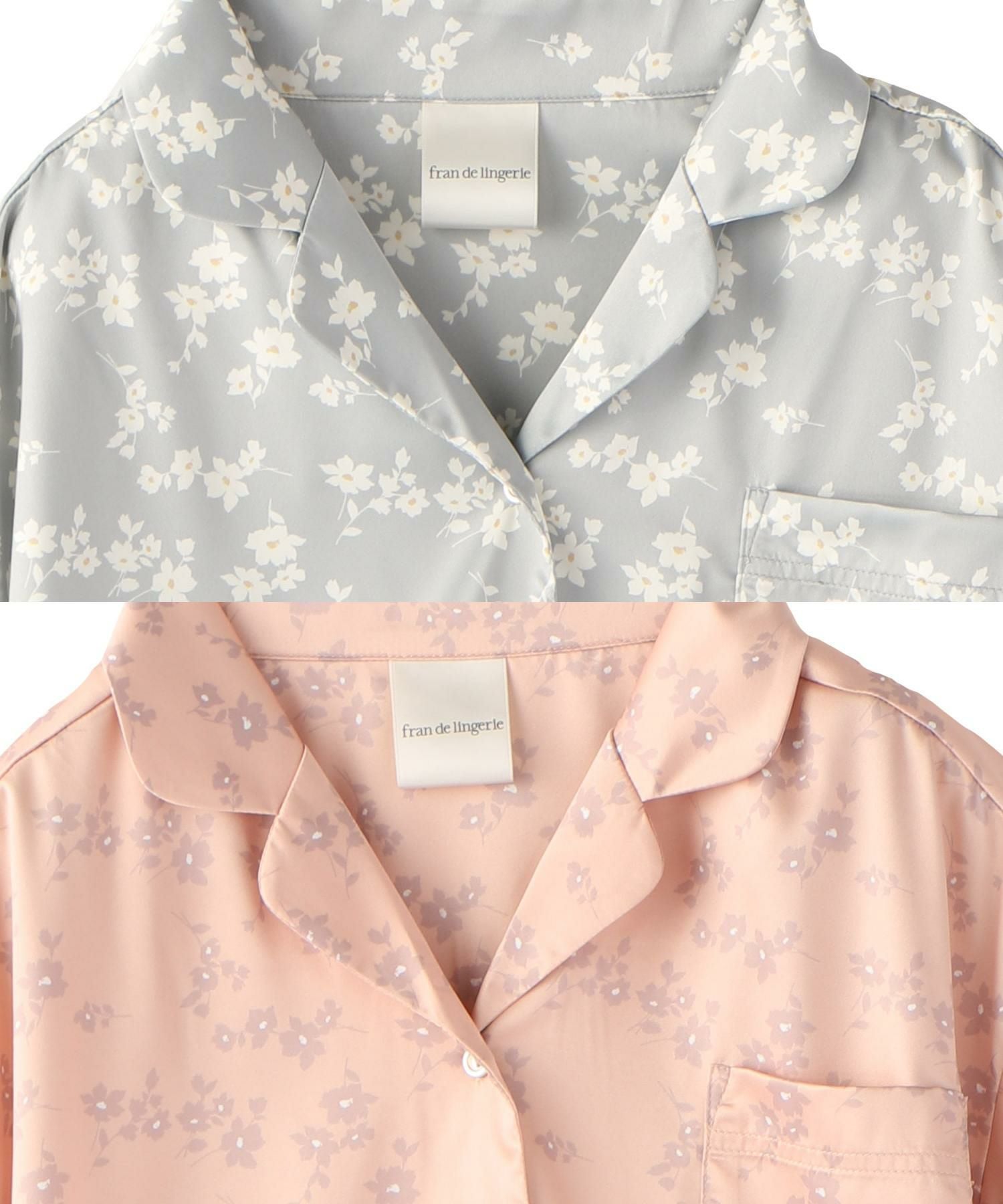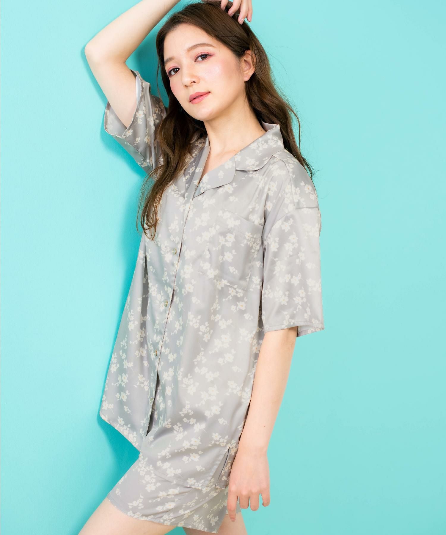 milky-satin半袖パジャマシャツ・ハーフパンツ上下セット