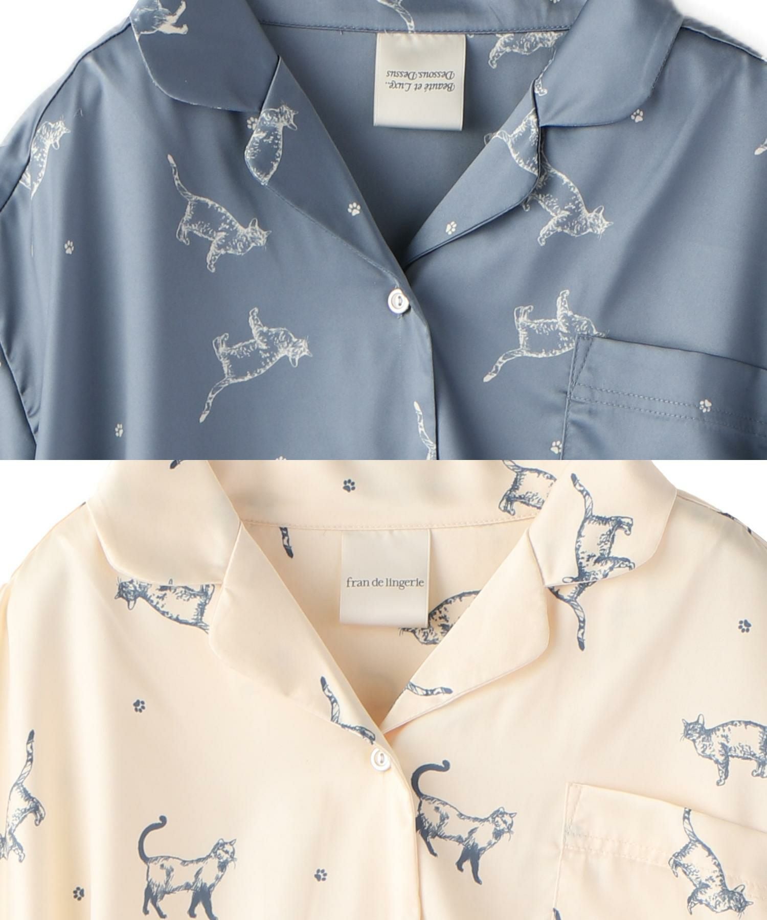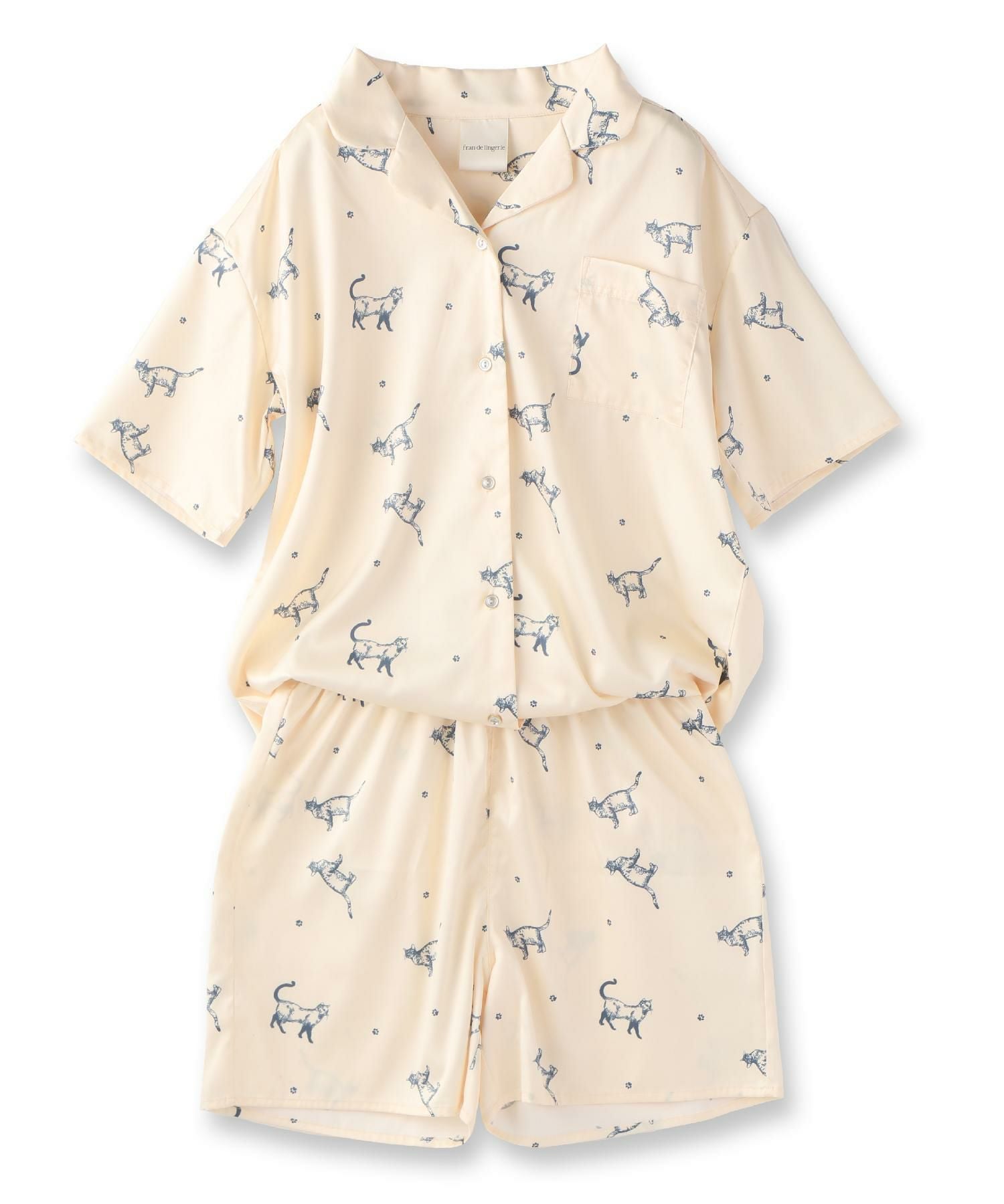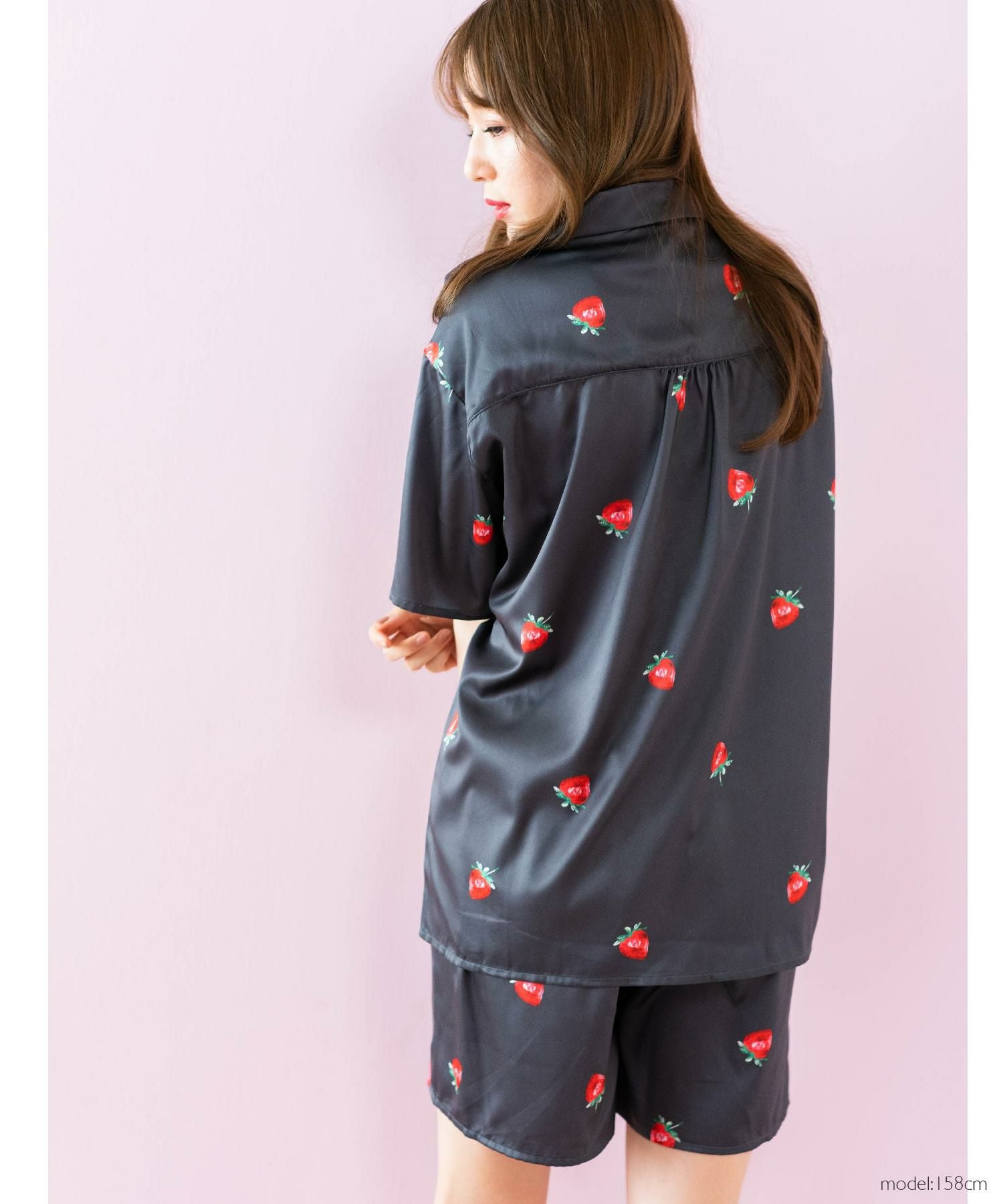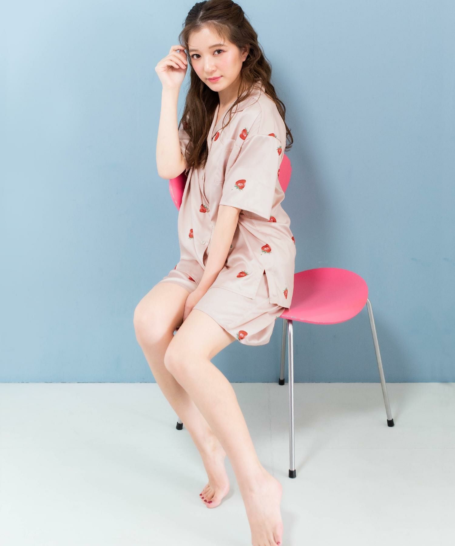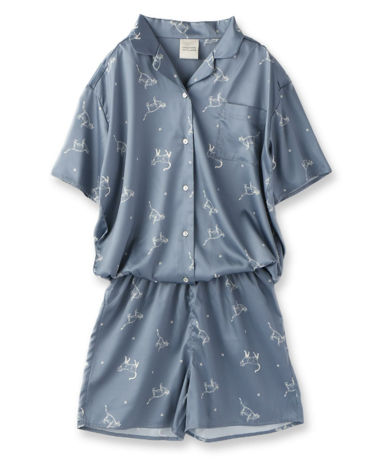 milky-satin半袖パジャマシャツ・ハーフパンツ上下セット