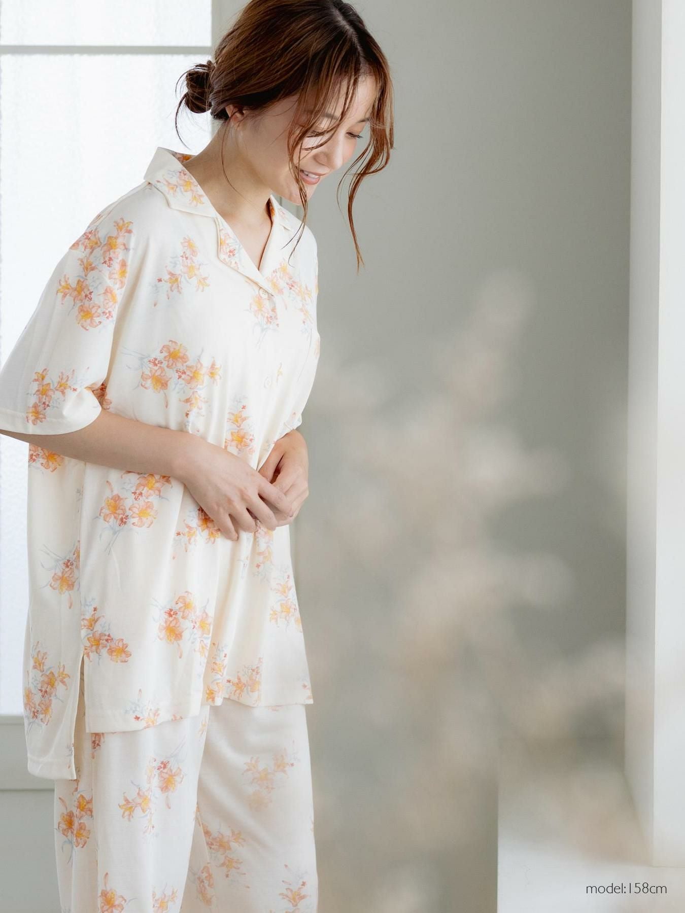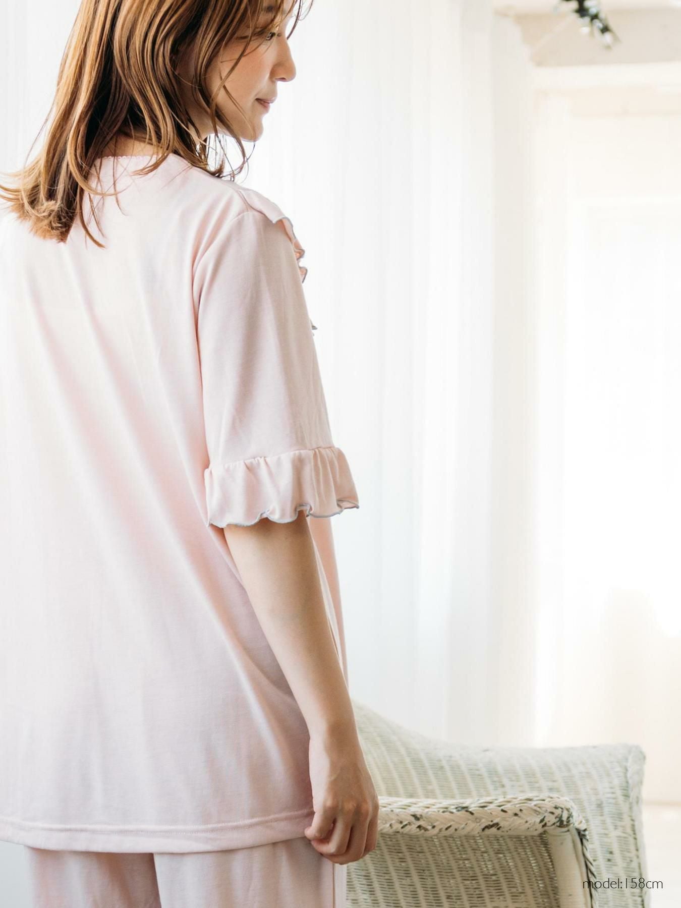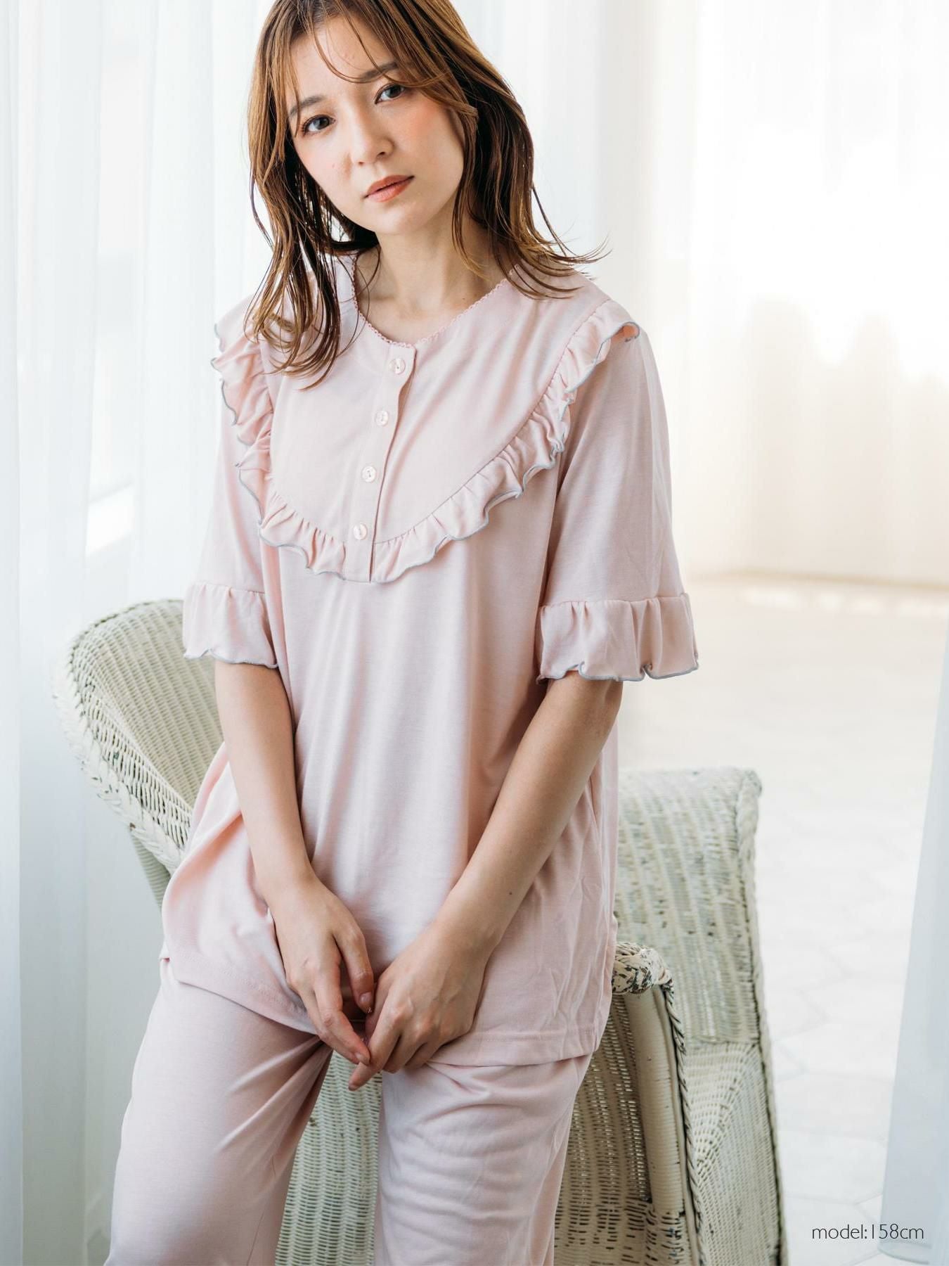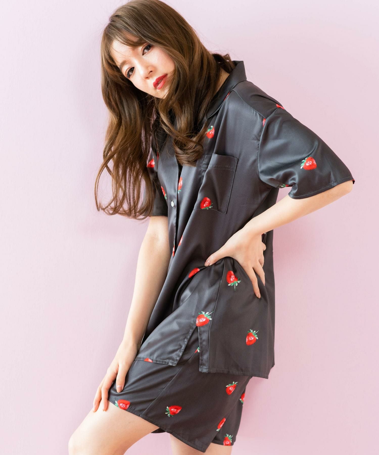 milky-satin半袖パジャマシャツ・ハーフパンツ上下セット