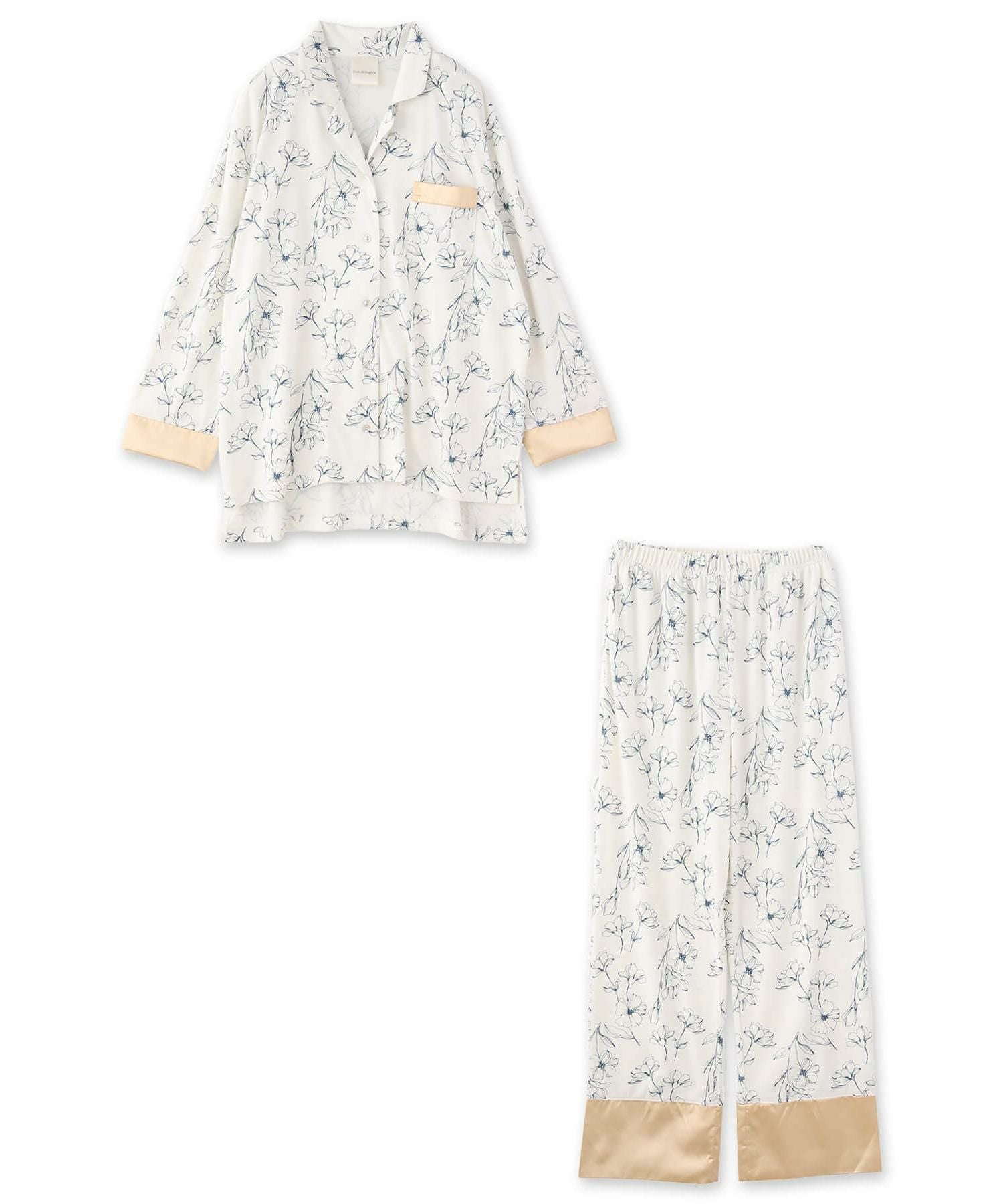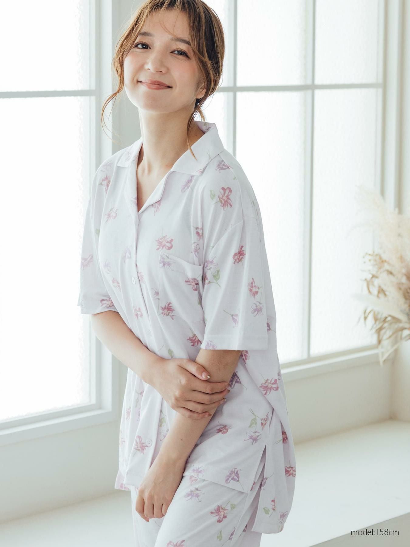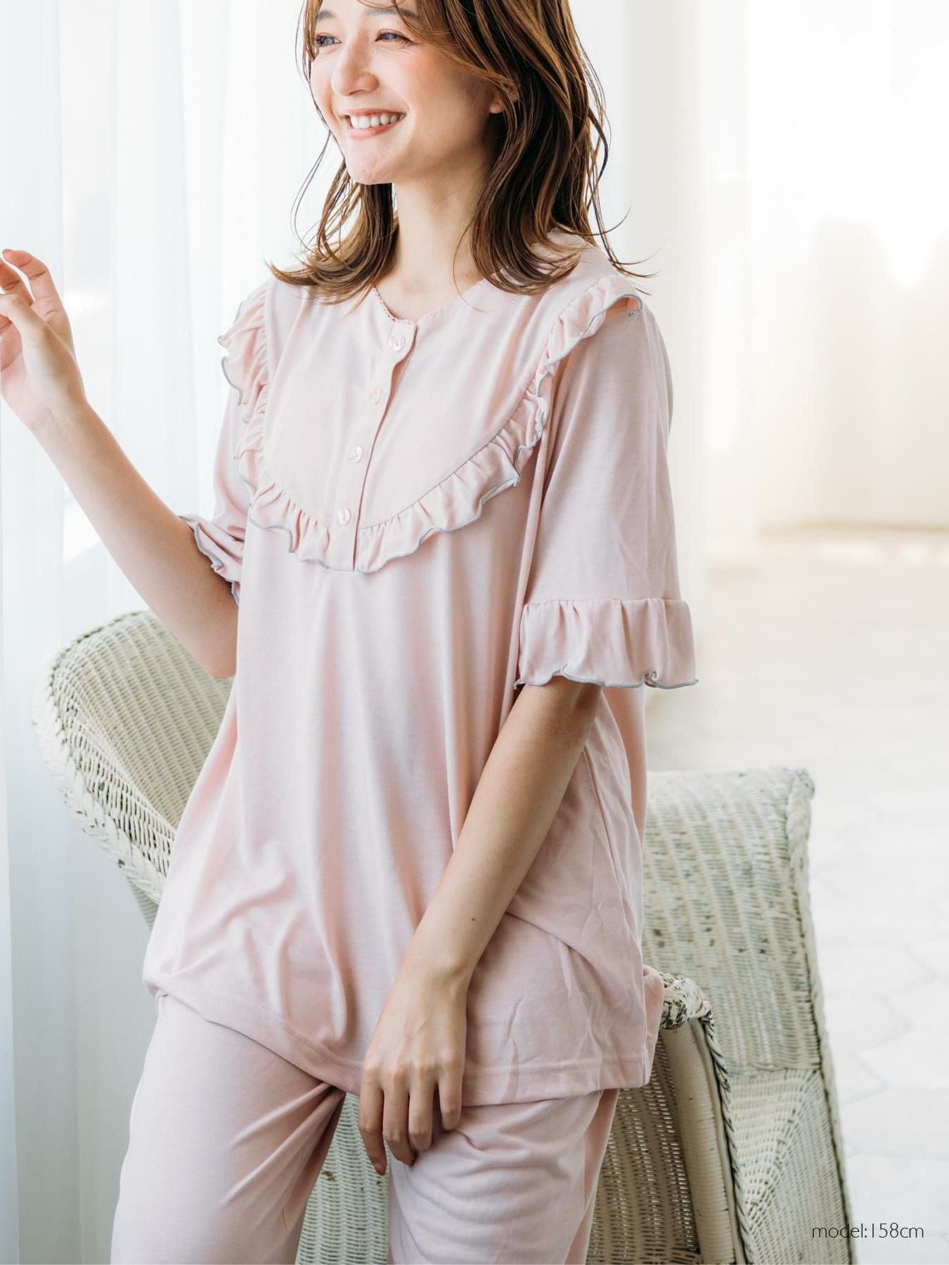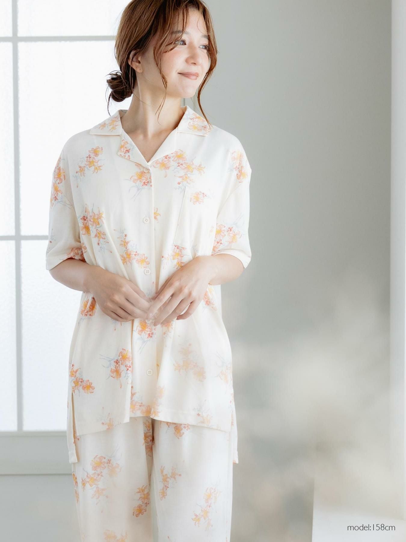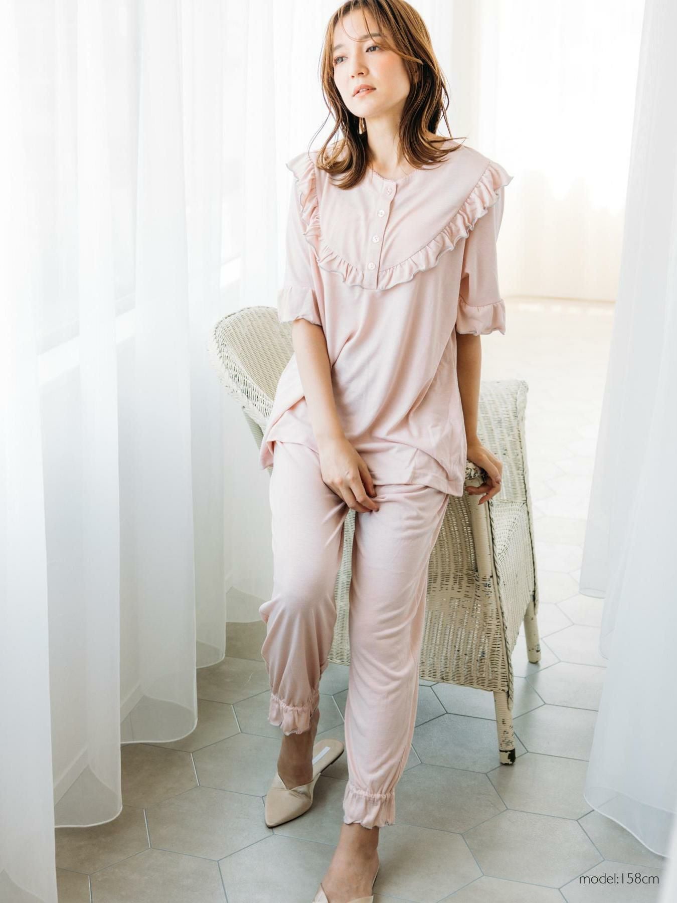 milky-satin半袖パジャマシャツ・ハーフパンツ上下セット