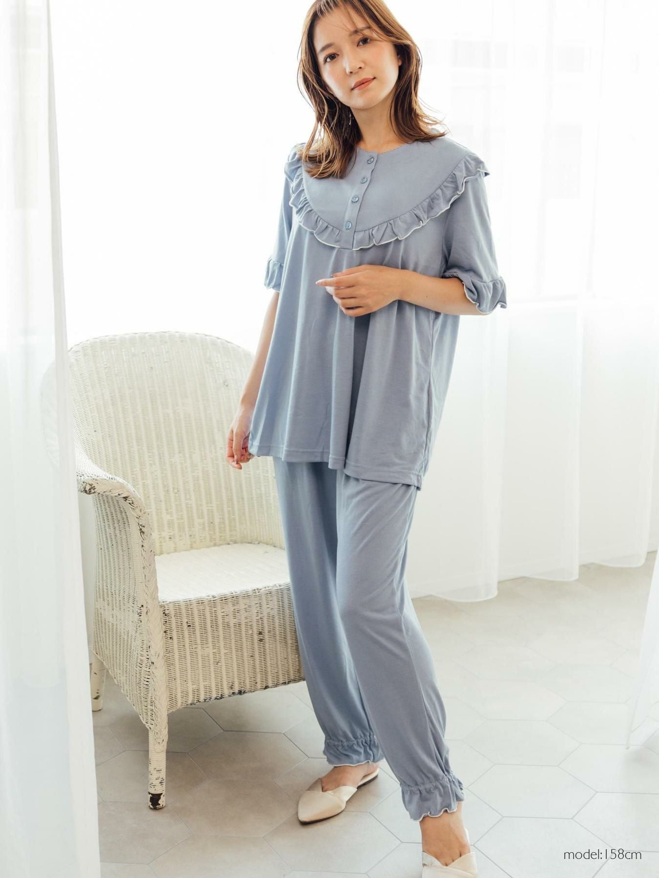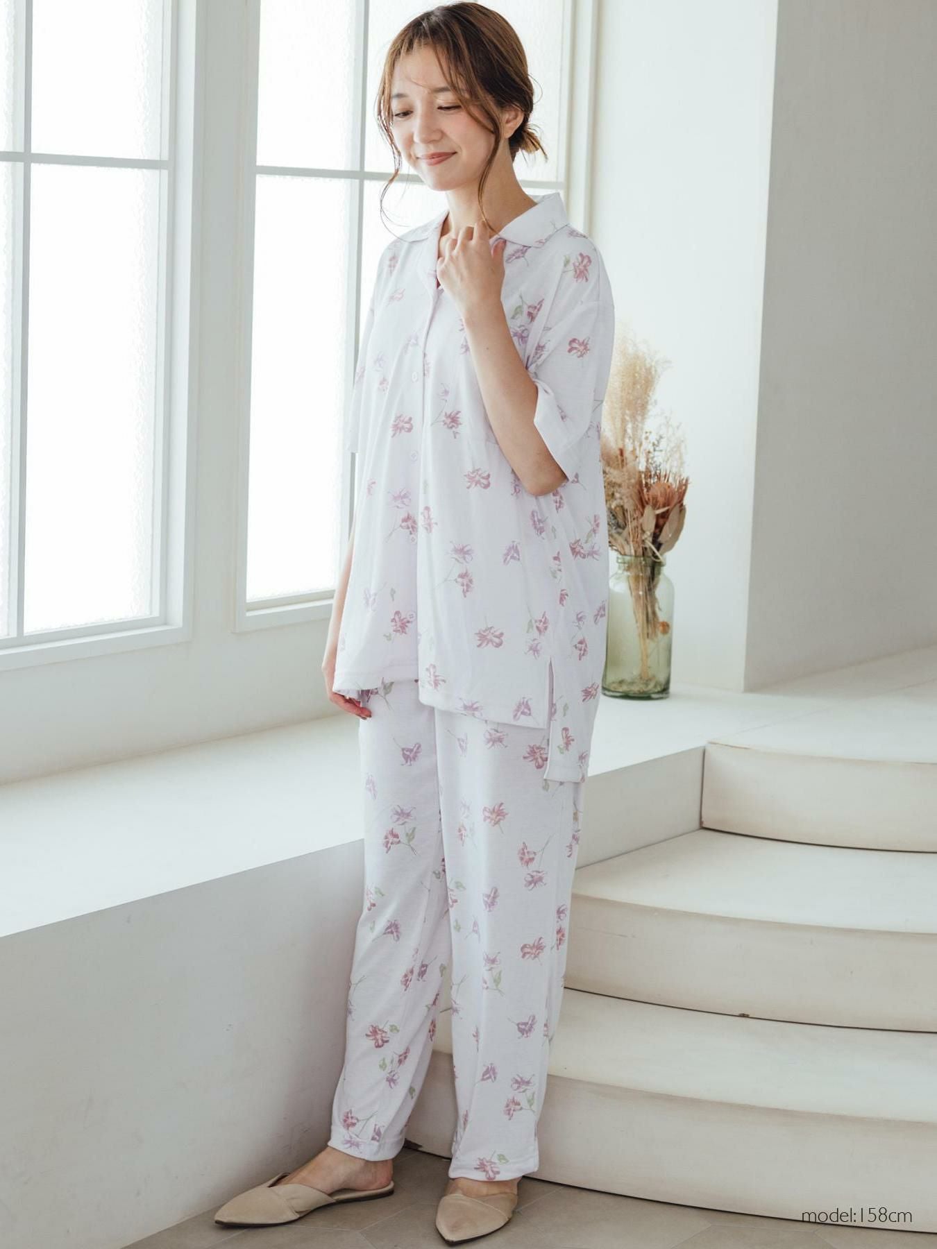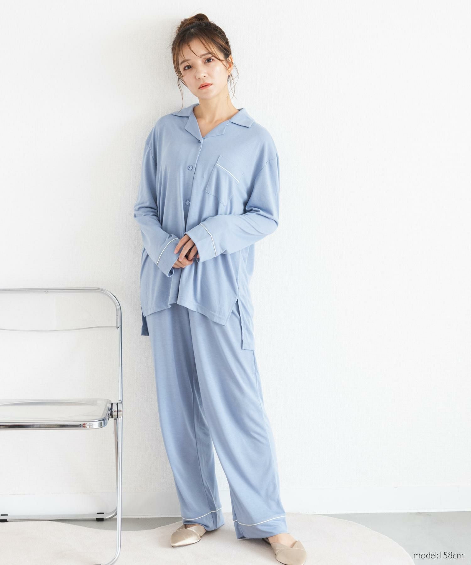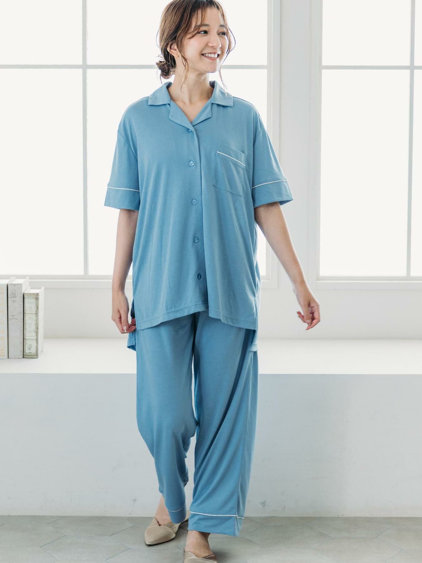 set-up半袖パジャマシャツ・ロングパンツ上下セット