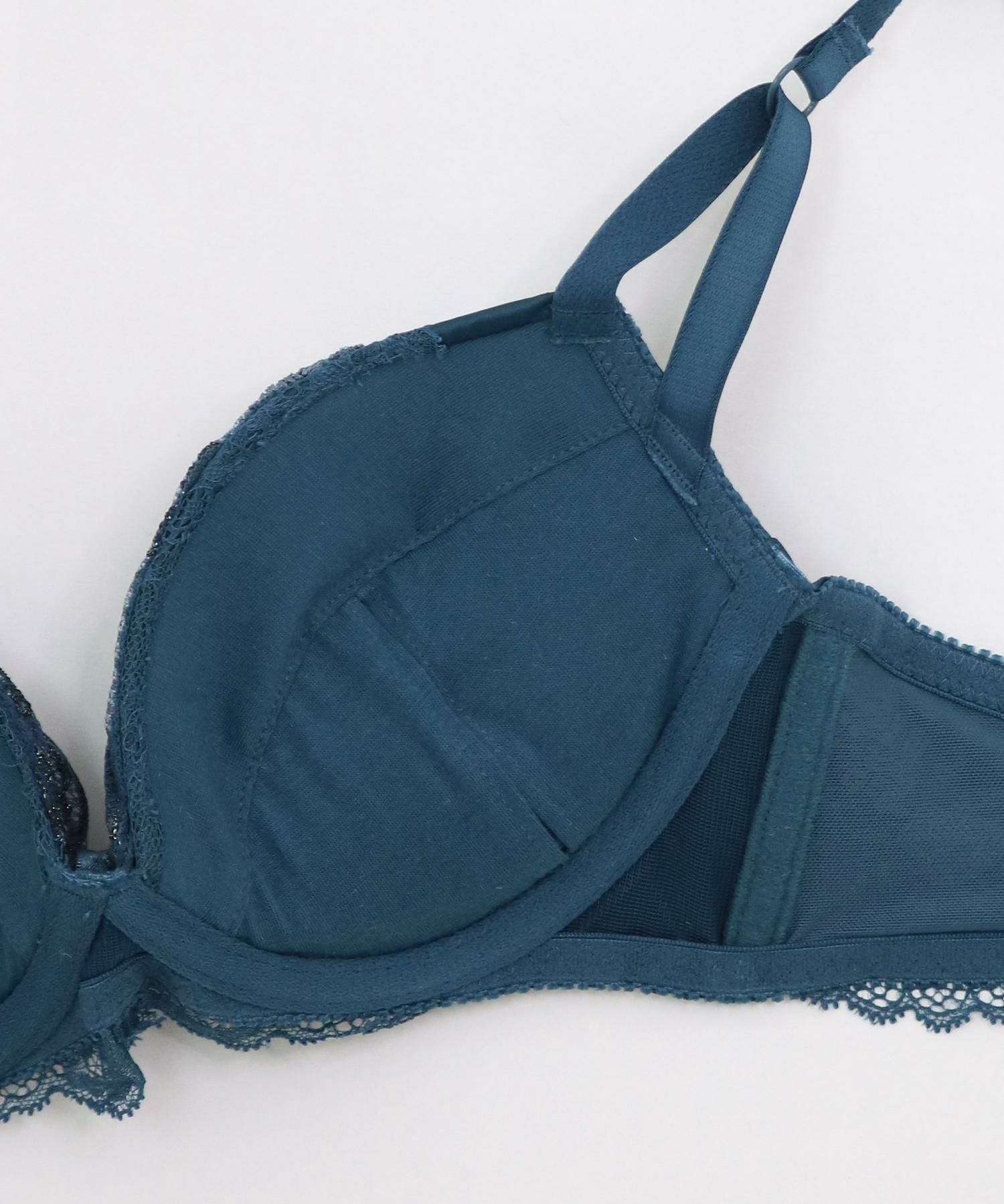ブラはカップ内蔵パッド+取り外せるパッドと安定感高めパターンで豊かなデコルテを長時間キープする人気のパターンを採用し、デザインに負けないゴージャスなバストメイクを楽しめます。デザイン性の高いストラップは見た目だけではなく伸縮性もありバストをしっかり支えてくれます。カップ裏には綿100%の綿天竺を使用し、素肌に優しい仕様になっています。