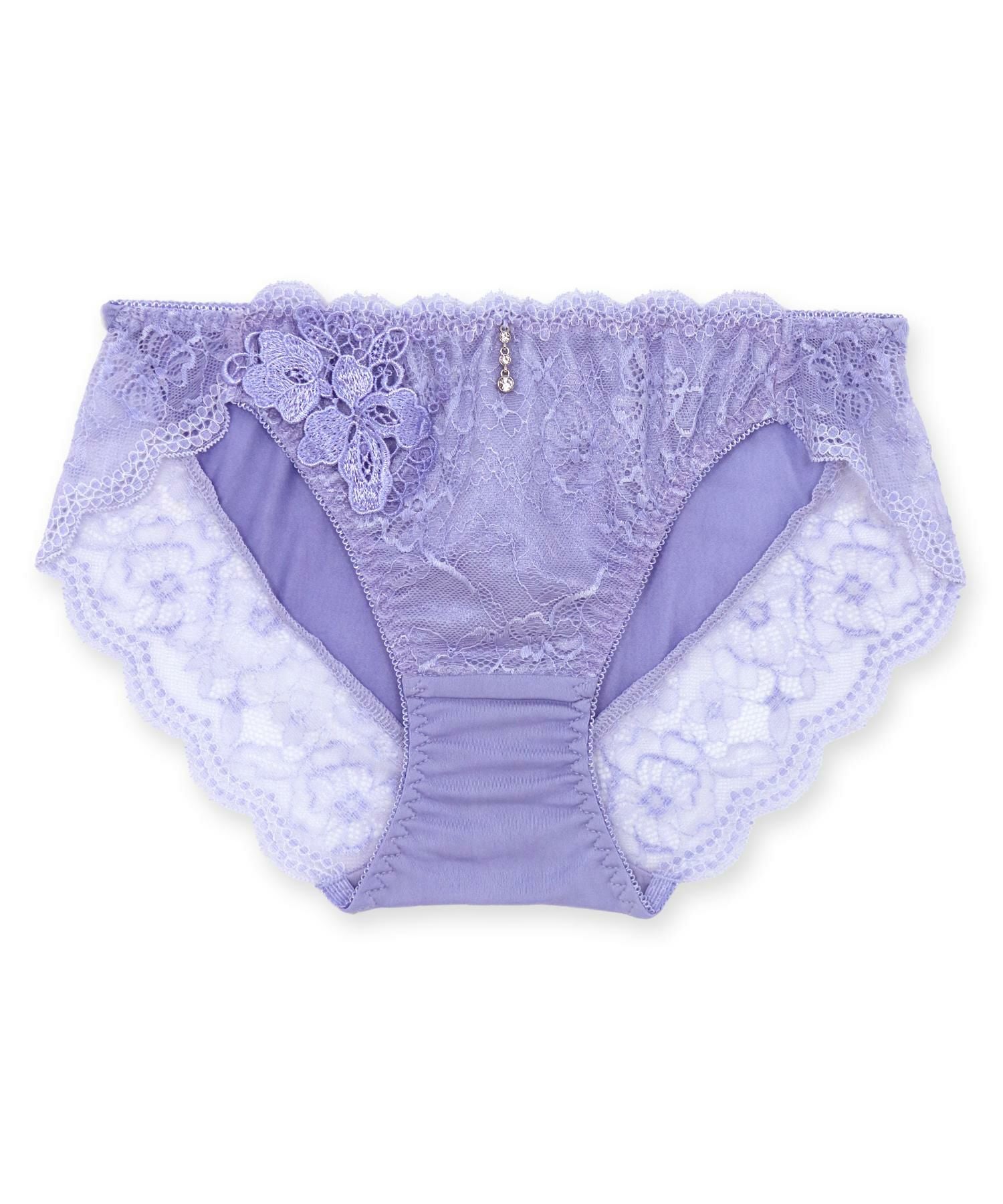 総レースにモチーフレースを重ねたレース尽くしのデザイン。ファッションにも響きにくく、使いやすさとデザイン性を兼ねそろえています。小粒のラインストーンはチェーンで繋がっているので繊細な揺らめきでさり気なく存在感を楽しめます。