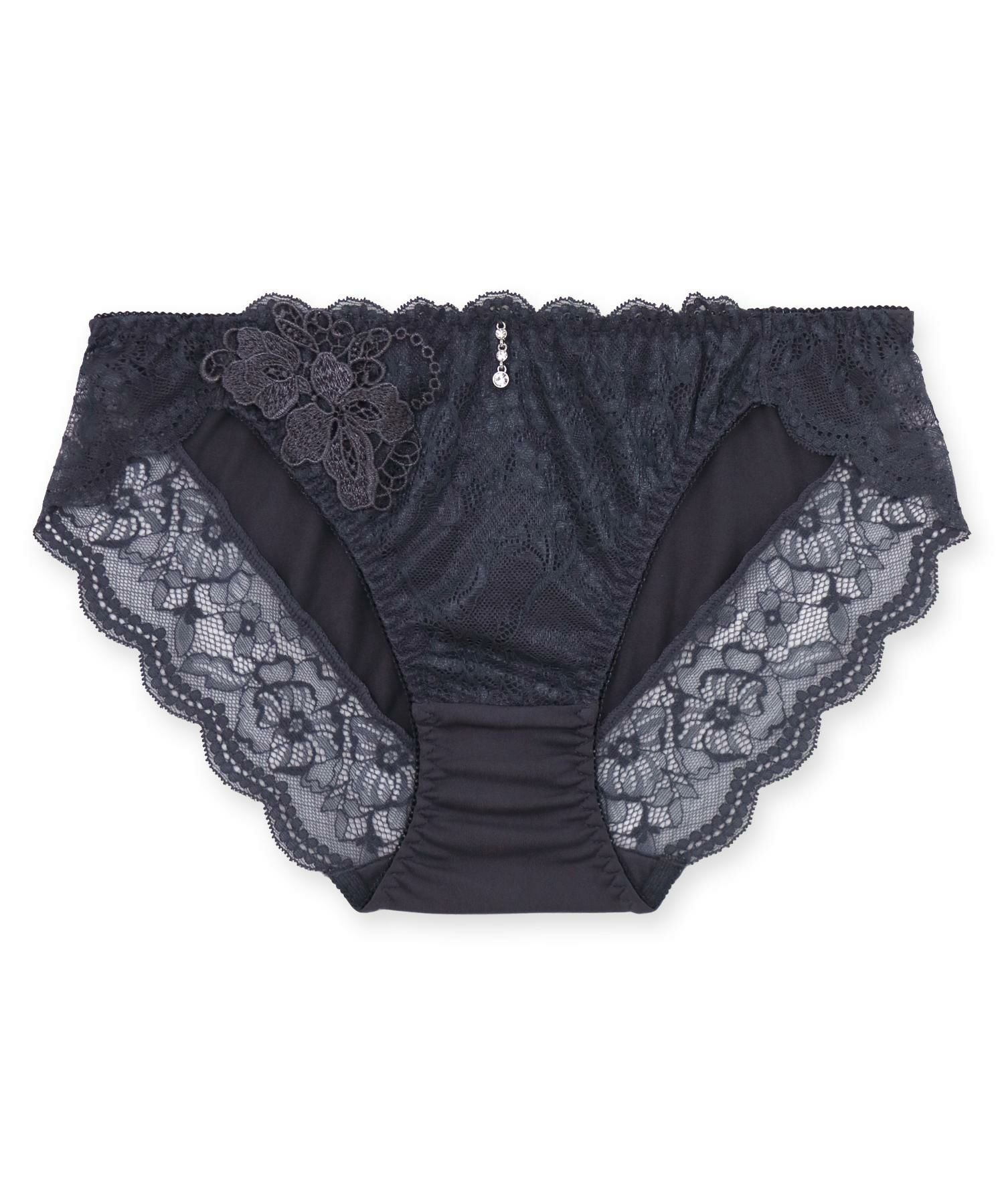 ヒップは伸びのいい素材で心地よくフィット。レースのトリミングで喰い込みにくく、アウターに響きません。