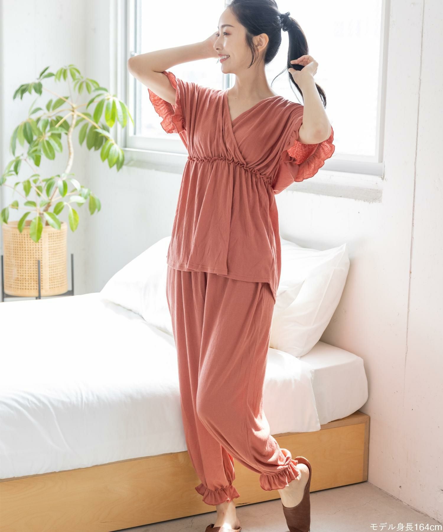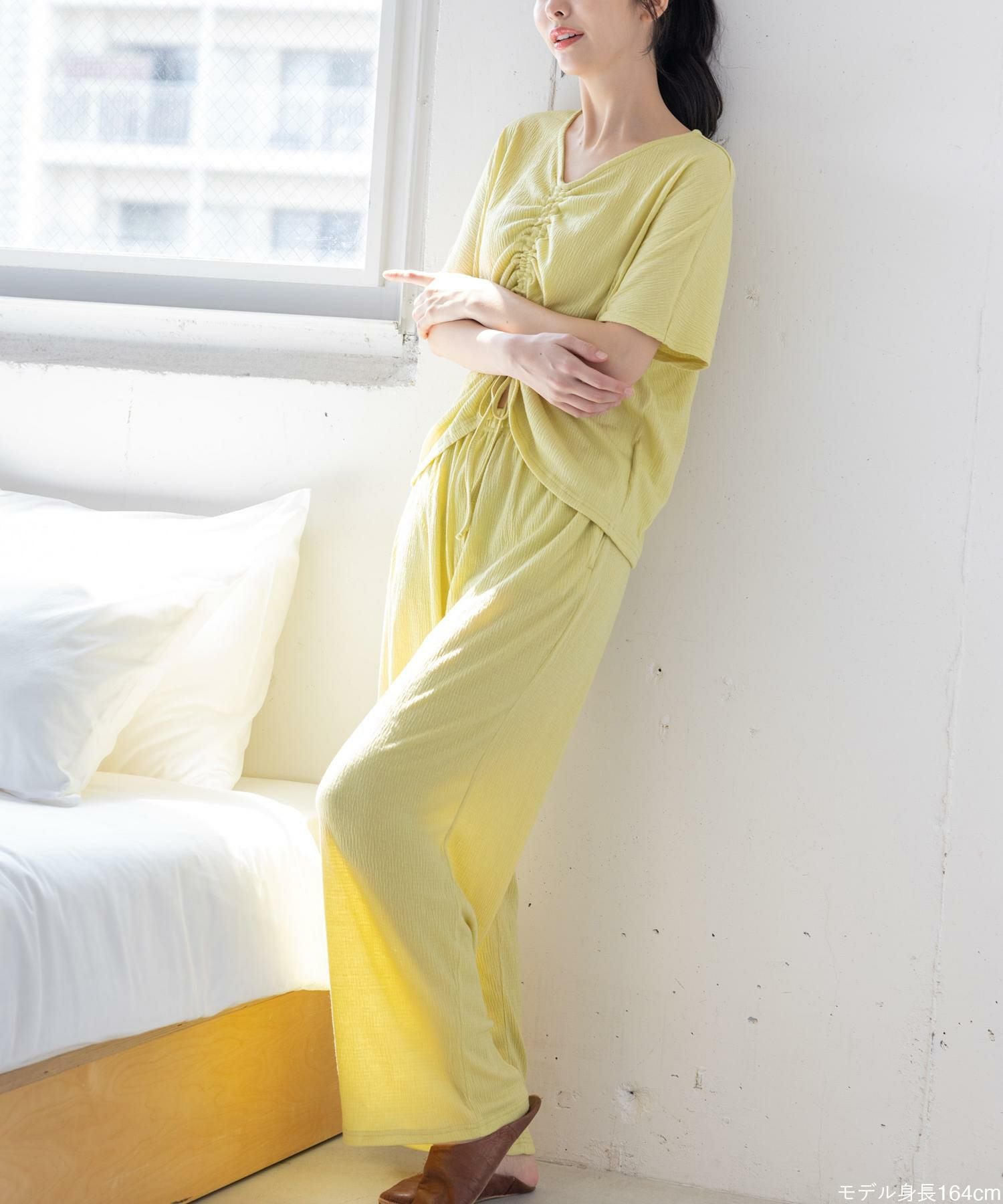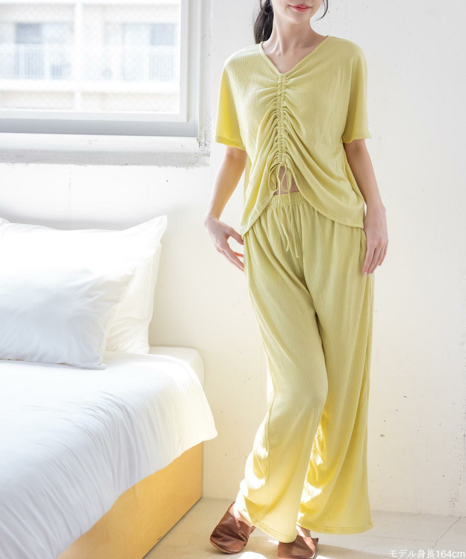 ルームウェアとしても、インナーとしても使えるお得なキャミソール&タップパンツSET 日常に寄り添うベーシックランジェリー 「スフレフィットブラベスティー 」