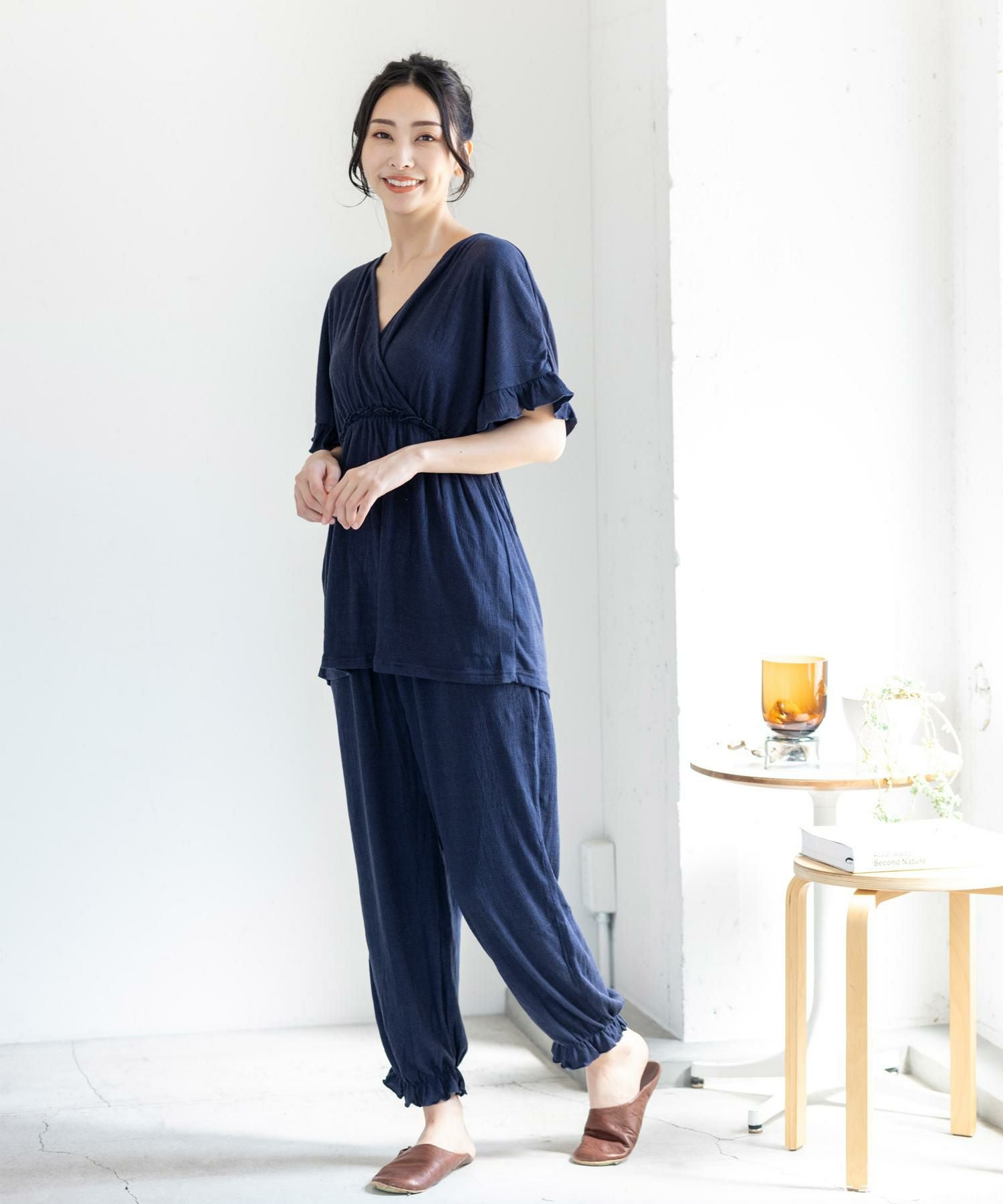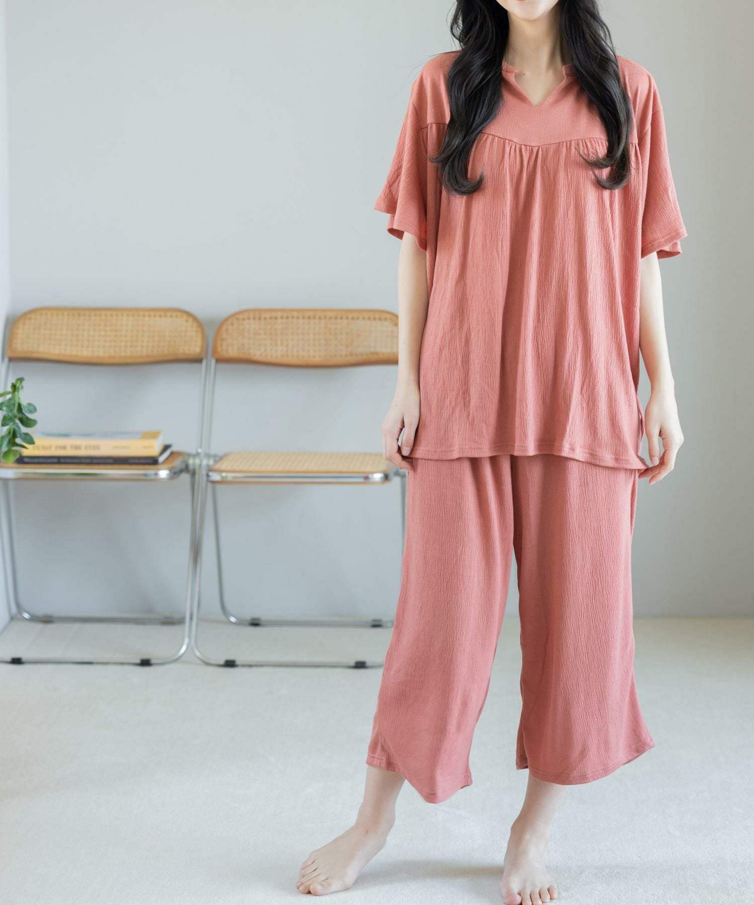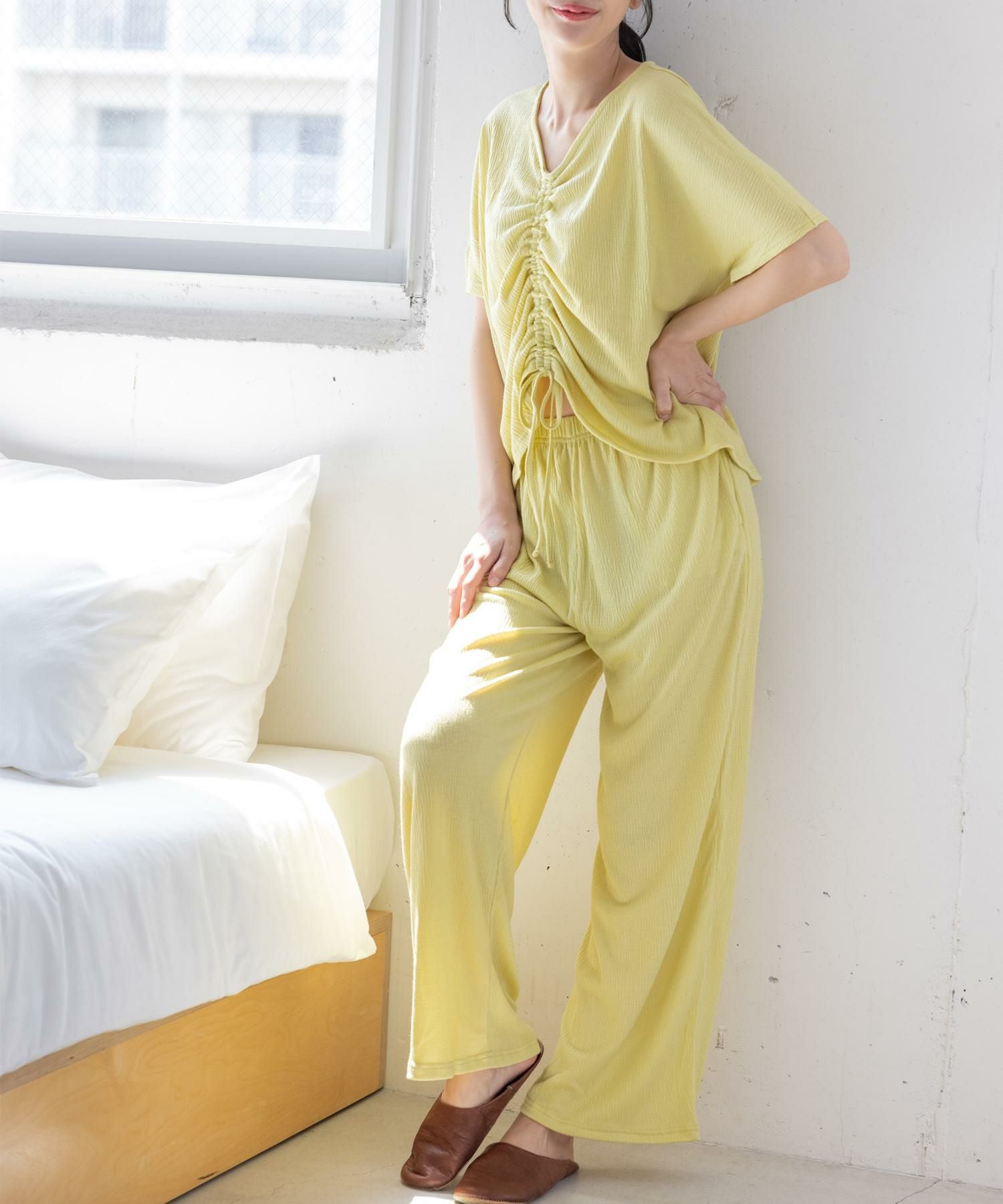 ルームウェアとしても、インナーとしても使えるお得なキャミソール&タップパンツSET 日常に寄り添うベーシックランジェリー 「スフレフィットブラベスティー 」