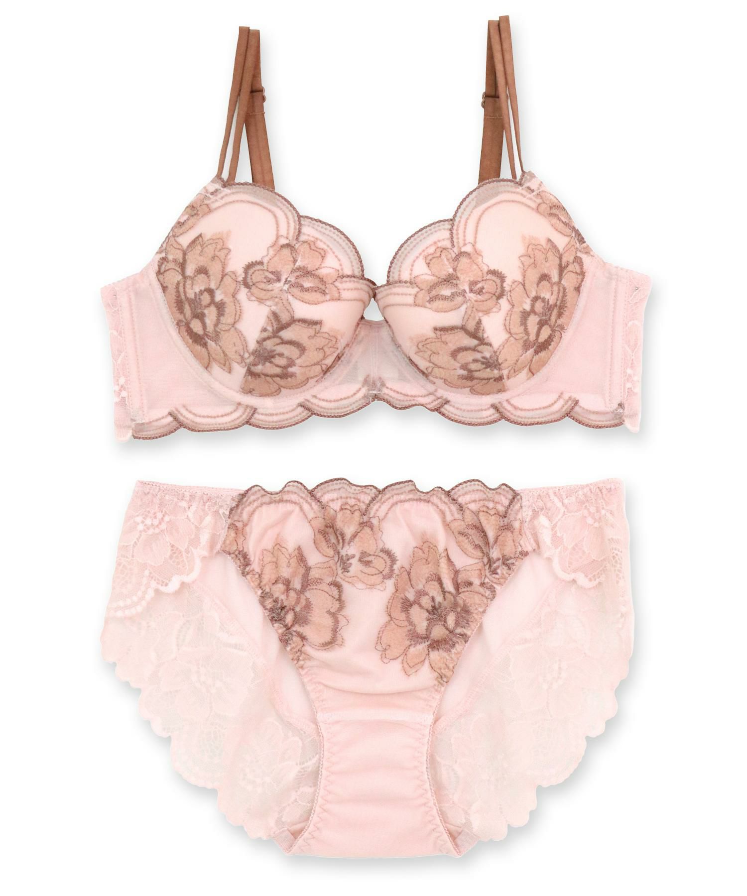 軽やかなタッチのフラワー刺繍を洗練されたモダンな配色で楽しむ大人カワイイランジェリー。
