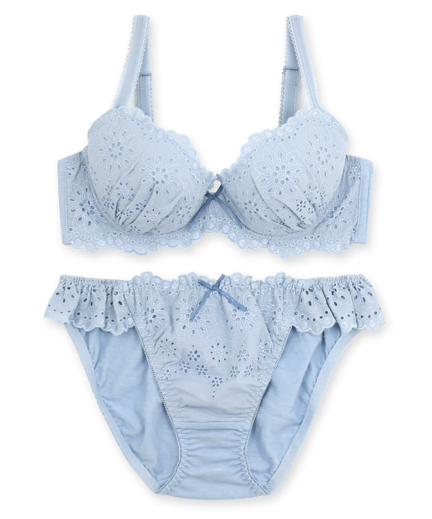 素肌を優しく包む配慮がいっぱい ノンワイヤーのコットンレースのブラ&ショーツSET 「コットンドラジェ ペアブラジャー(ワイヤー無し)」