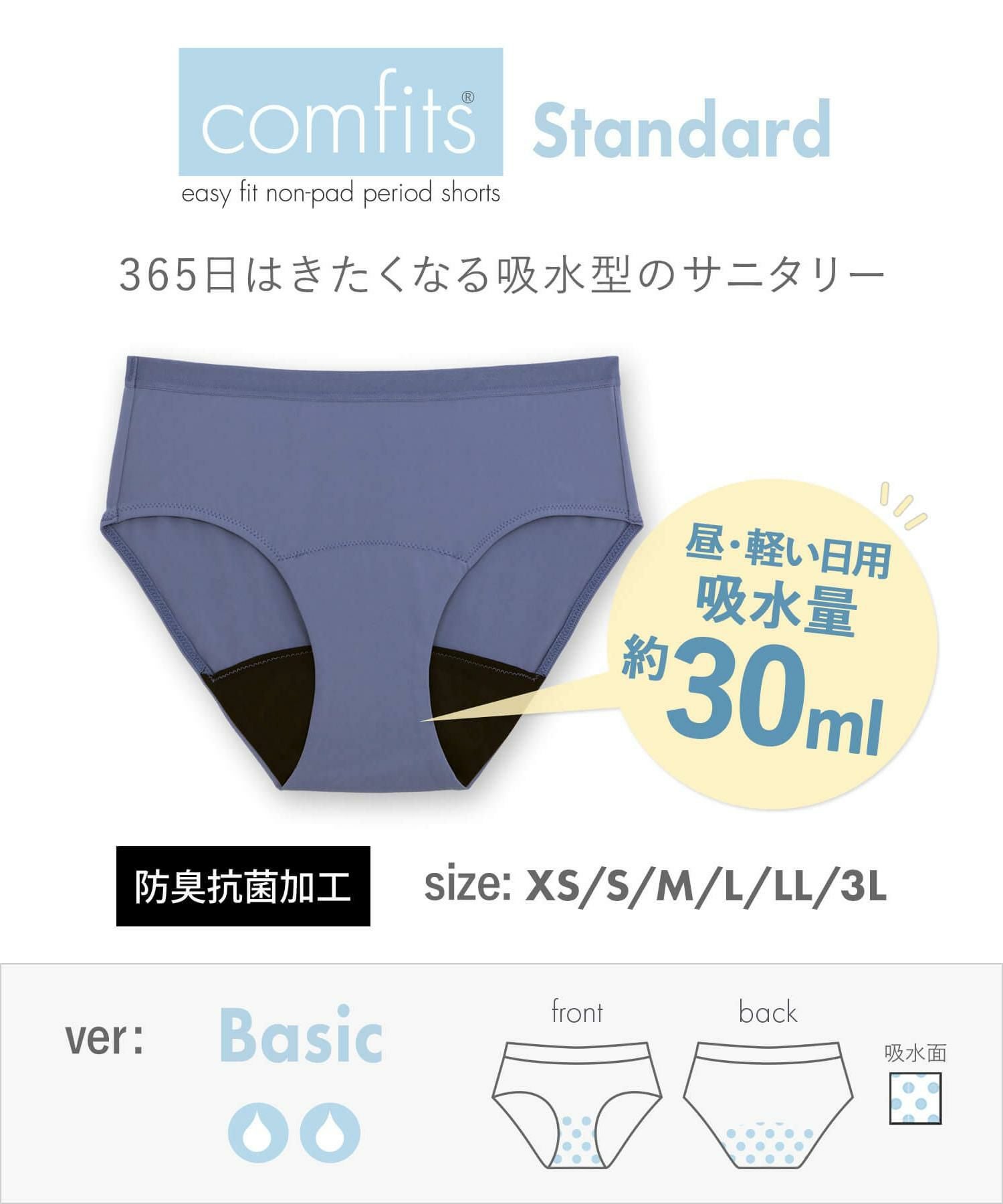 他の画像を見る デイ用はもちろん、おりもの対策にも◎ 363日穿きたくなるような進化した吸水型サニタリーショーツcomfits Standard(コンフィッツ スタンダード) 「コンフィッツスタンダードベーシック ショーツ」 ¥ 2,900 税込 カートに入れる お気に入りに登録する
