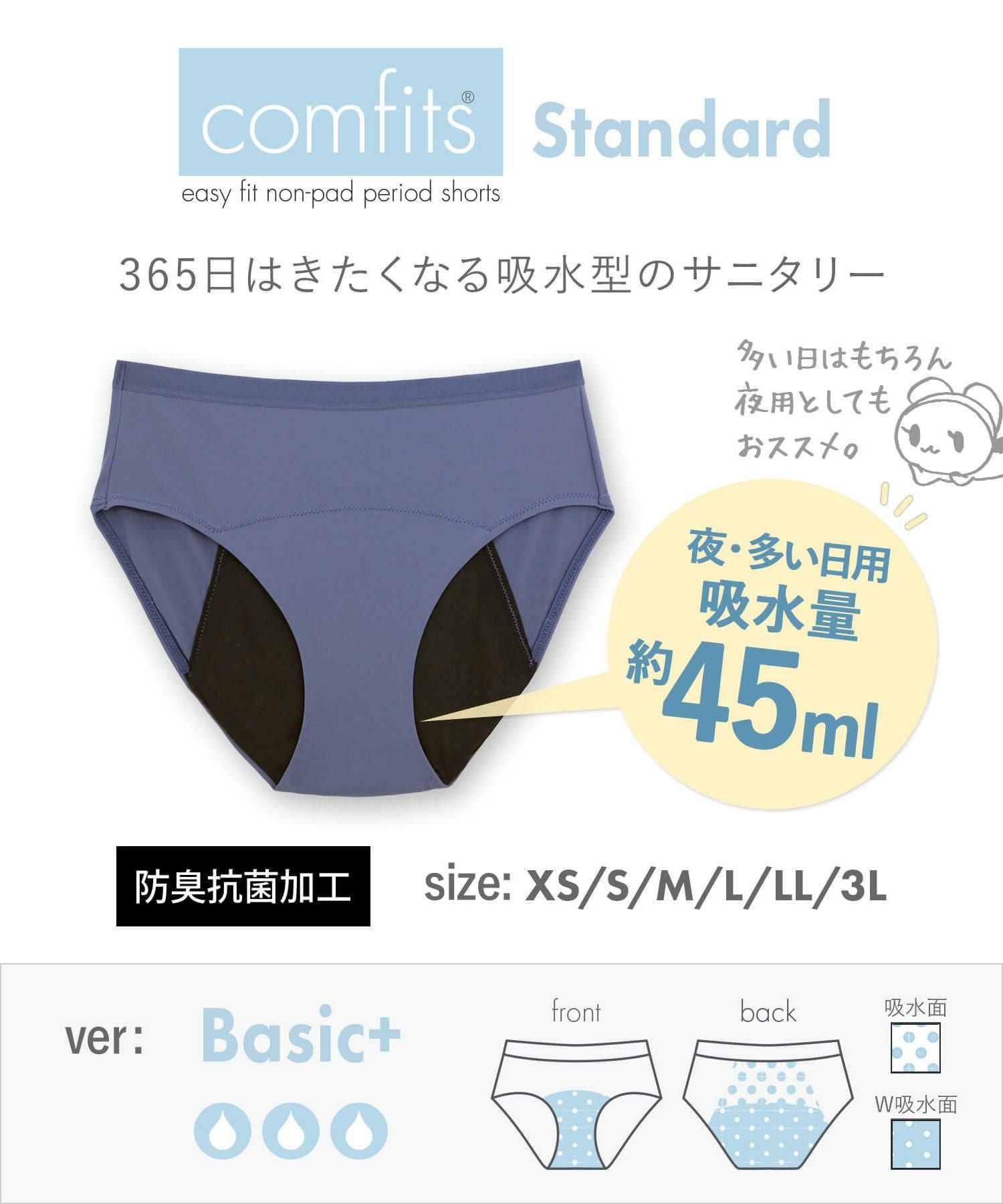 他の画像を見る デイ用はもちろん、おりもの対策にも◎ 363日穿きたくなるような進化した吸水型サニタリーショーツcomfits Standard(コンフィッツ スタンダード) 「コンフィッツスタンダードベーシックプラス ショーツ」 ¥ 3,400 税込 カートに入れる お気に入りに登録する
